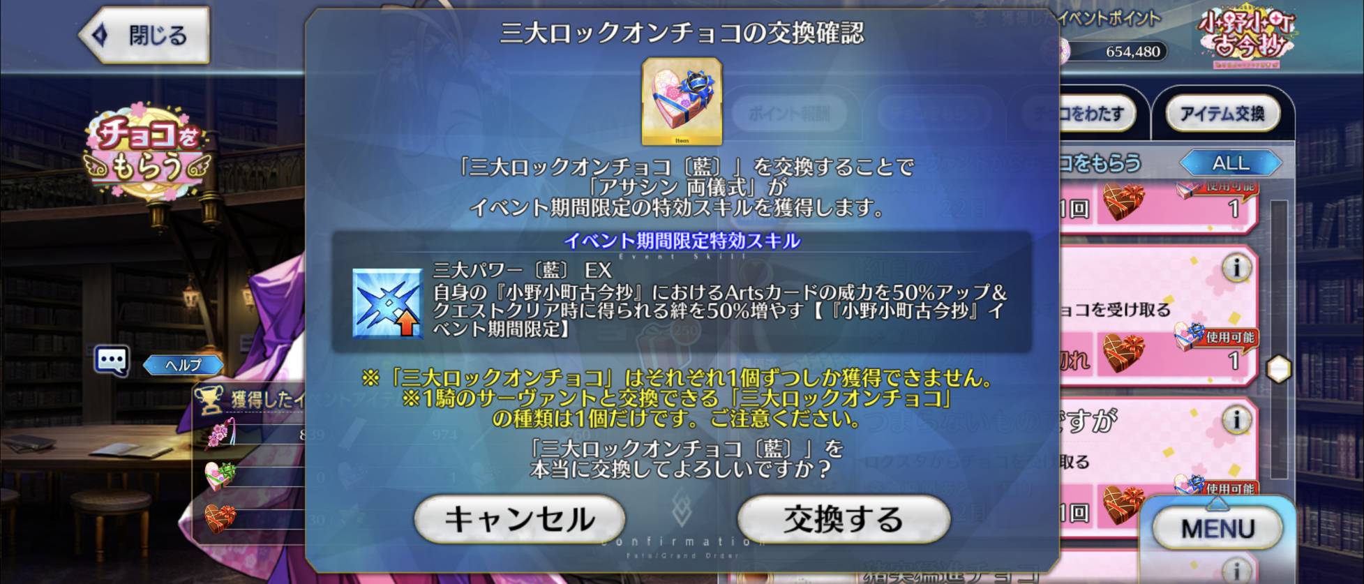 (サーヴァントでアイリさんとクロが天なのもそれが理由?)正直チョコ渡した後からでもロックオン渡せるようにしてほしい、とりあえず誰に渡すか悩む前に雑にチョコ消費したいんよ