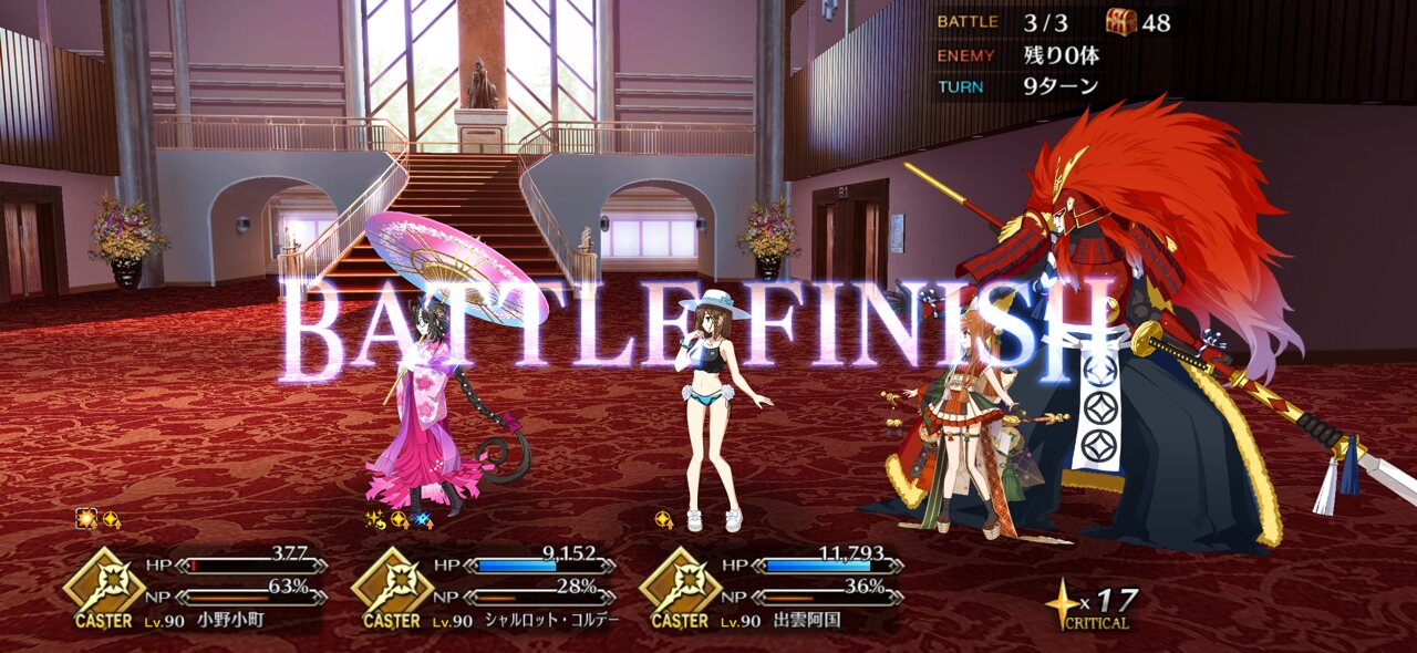 なお2waveの大鬼は太公望宝具5でミリ残る事が有る、アナスタシアは水着なぎこさん宝具3でちょい残し(多分宝具5で確殺いけるか?いけないか?くらい)なので普通に編成難度高めな模様根っこも鬼灯も捨てがたいよー