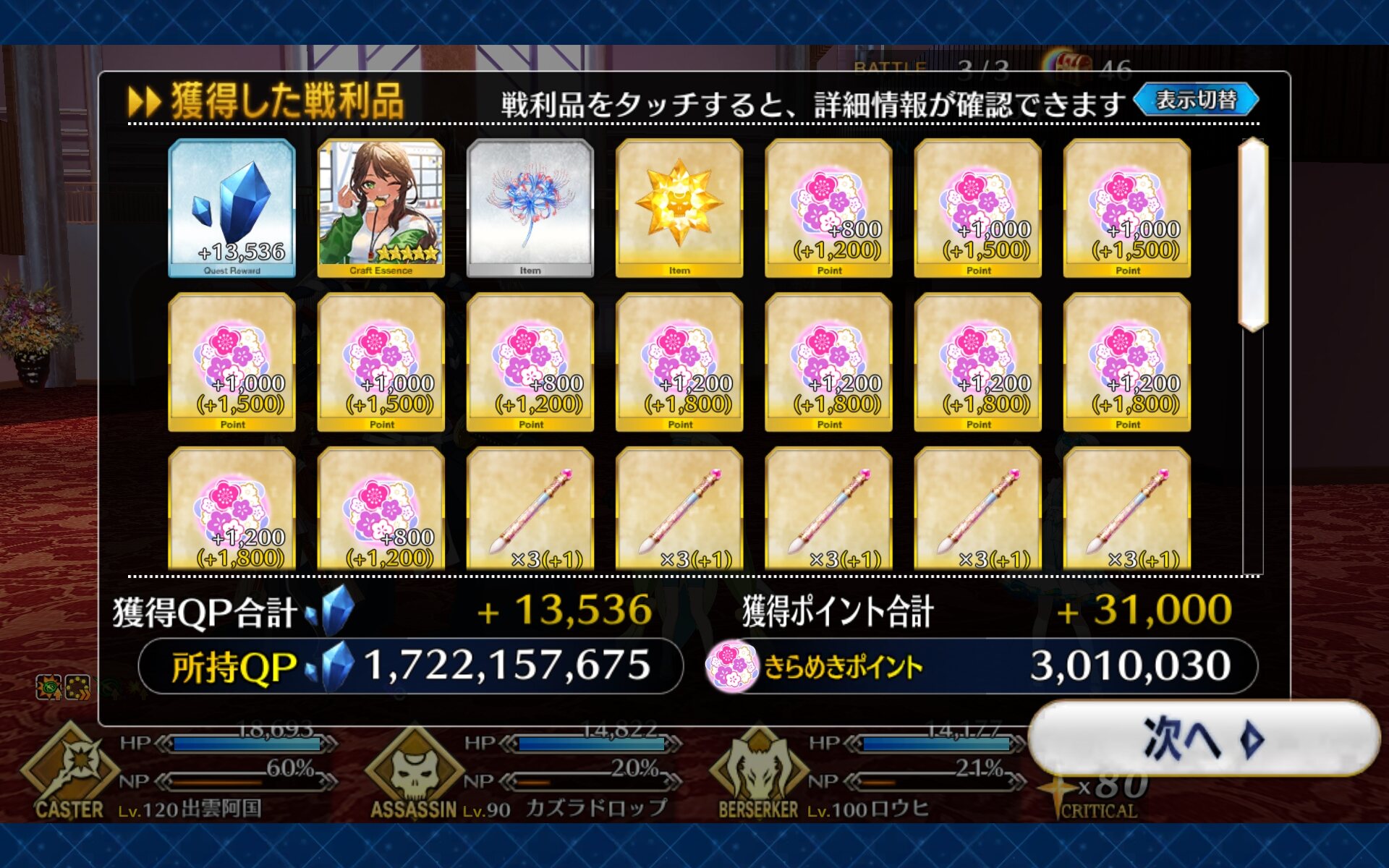 絆重視周回でポイント200万まで来たけど、このペースで行くとポイント報酬が最後まで行っても交換アイテムがかなり不足するな…?