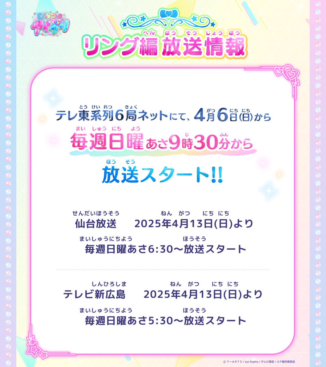 男児向けのライダーの裏に女児向けのプリオケを放送する事で客層の被りを減らそうとしてるんだなメインスタッフのオッサン達はライダーとプリオケのどっち見るの?