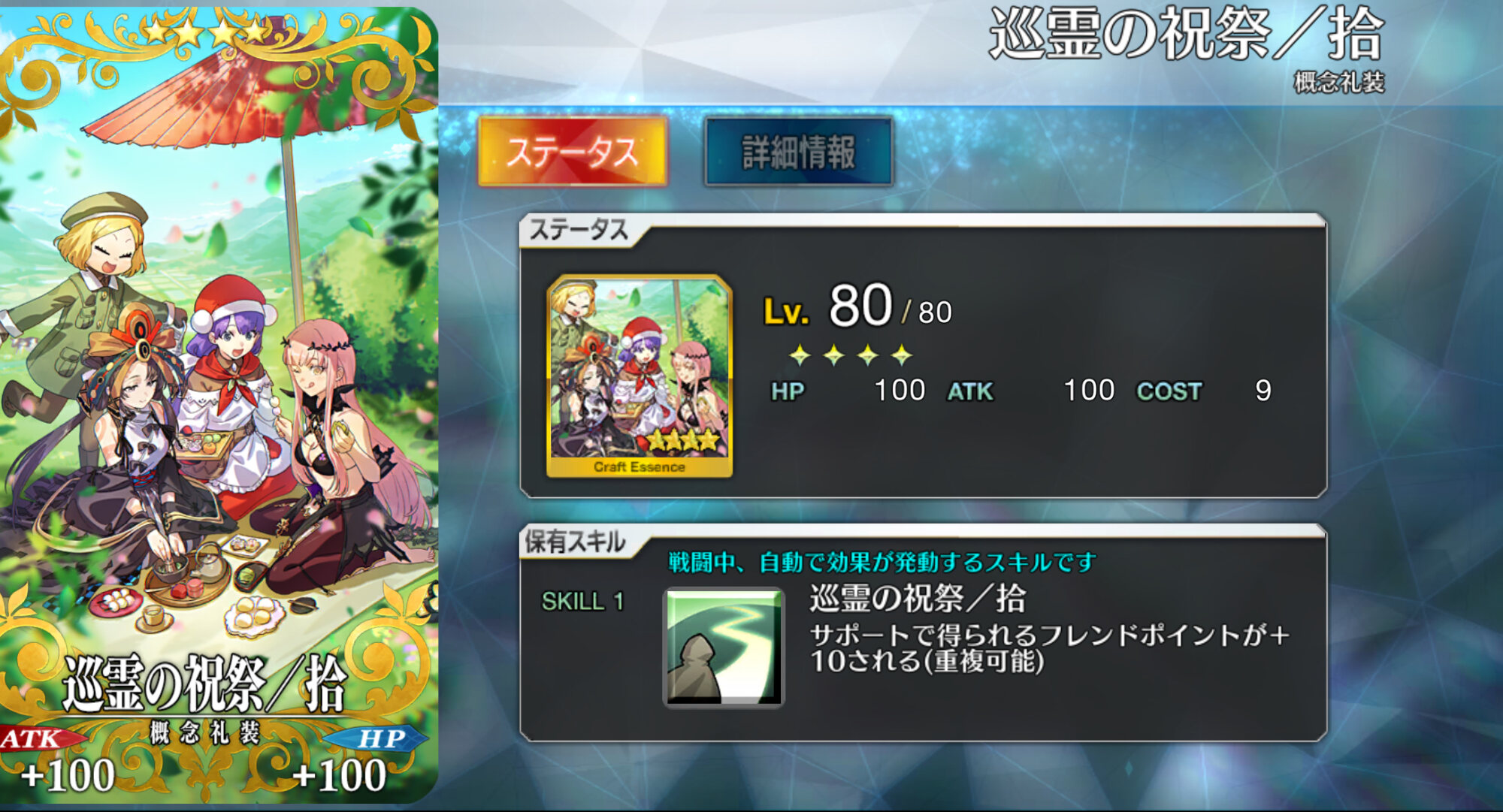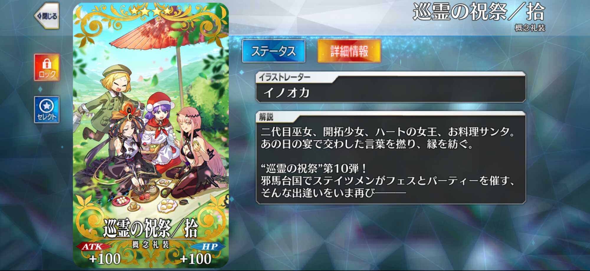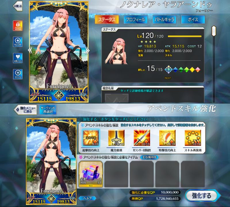そのうち他の聖杯サーヴァントと一緒にLv100にはするだろうけど、よほどのことがない限りはLv120にはたぶんしないわねぇ…