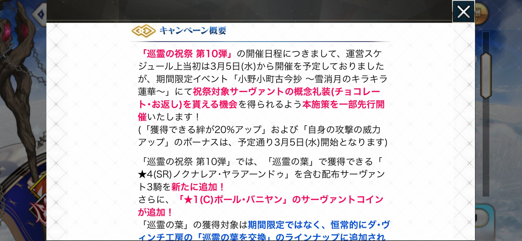 R18関連話題、よくてよ無しのガチャ結果、実装から二週間以内のシナリオ及び開催期間中のイベント内容、進行度依存の報酬、最終再臨や霊衣解放の画像や話題は専用スレにてお願いします