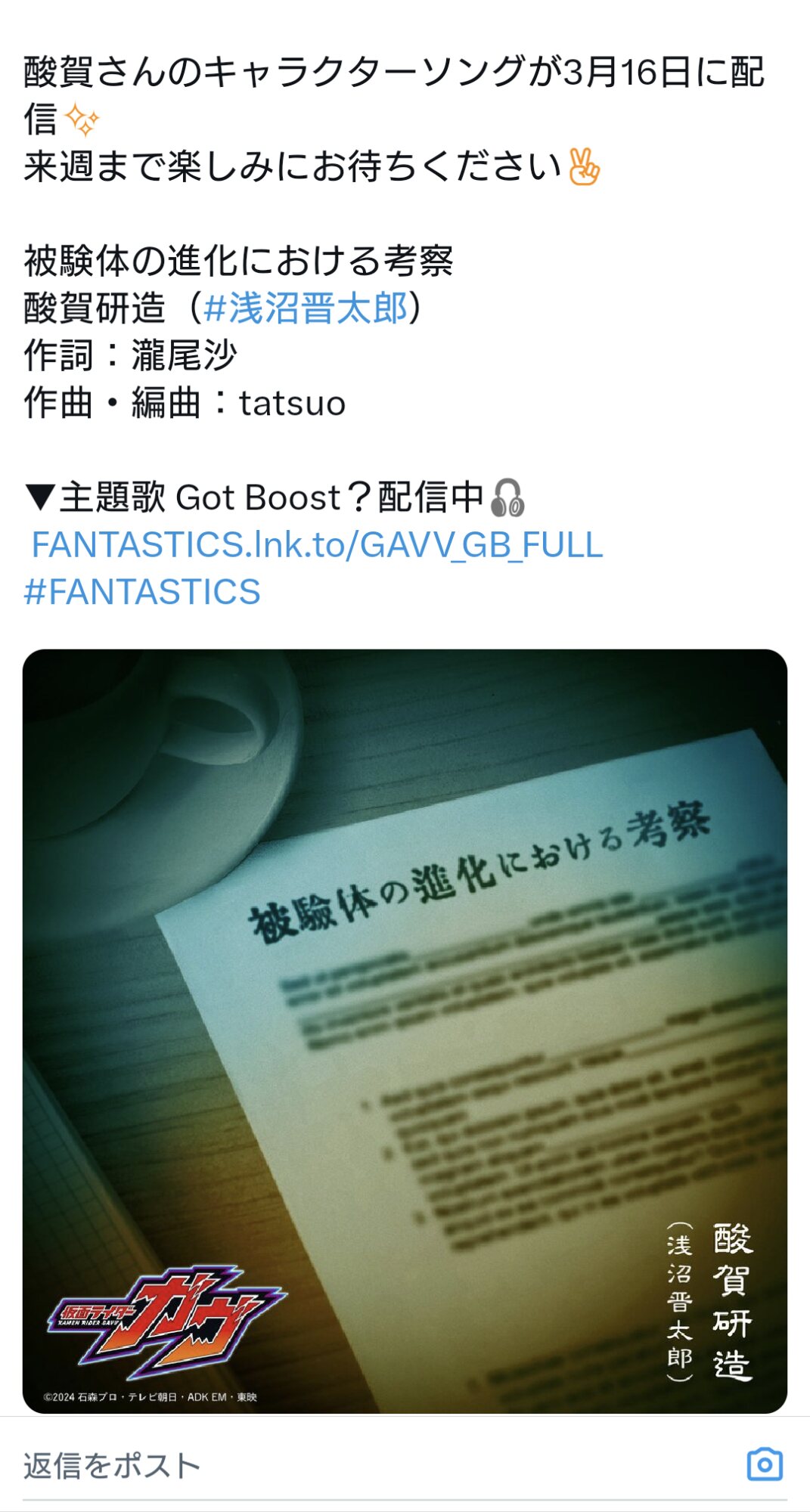 大抵TTFCのスピンオフって仮面ライダーだから仮面ライダー関係だろうと予想する>>895