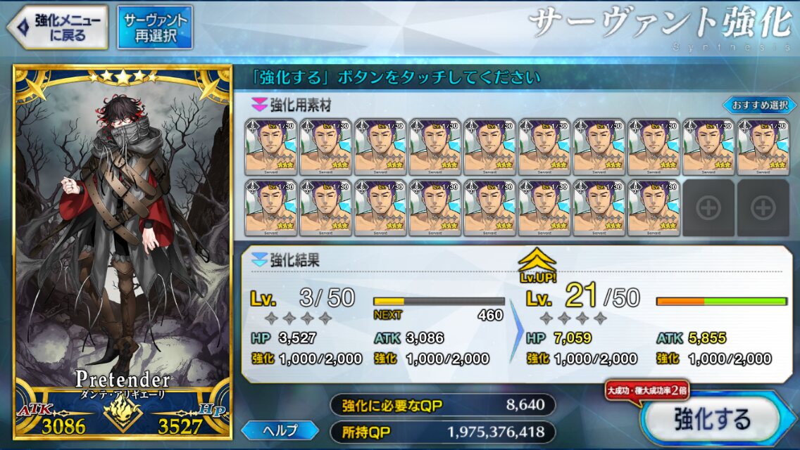 最終的にアニングと陳宮に合わせて聖杯5個突っ込んで令呪7画も使った妥協の産物だからあんまり大したことではないけど一応出来たは出来たから報告しとくねぇ