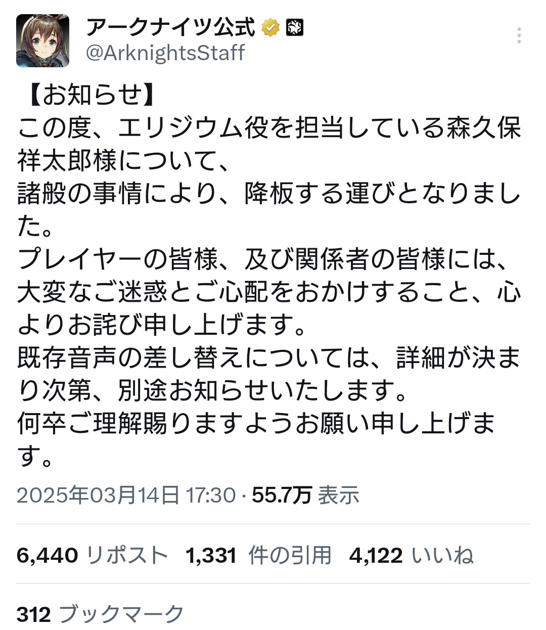 https://x.com/ArknightsStaff/status/1900464459510087709?t=Q-nf_erMRuQOX6EbH8epuA&s=19https://x.com/nijisanji_app/status/1900449391527481833?t=eqRRszjHfxsfv2iiLGx4_A&s=19