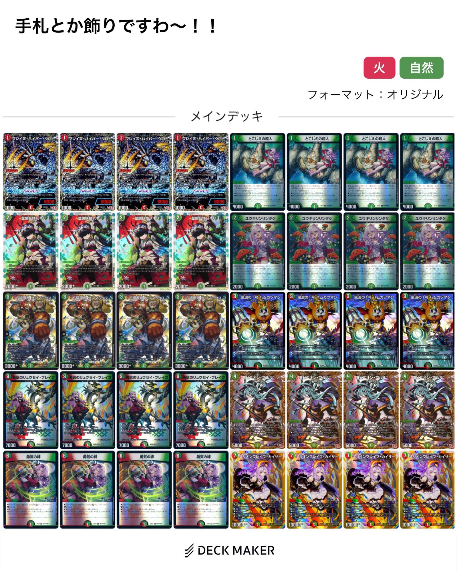 メルヴェイユのマナから召喚できる効果、フレンからの提案だったみたいだけど、確かに初心者は切り札をマナに置くのはちょっと…ってなるのをむしろマナ置いても大丈夫!ってしたのフレンにしては(むしろ初心者のフレンだからこそか?)中々いい着眼点だわ