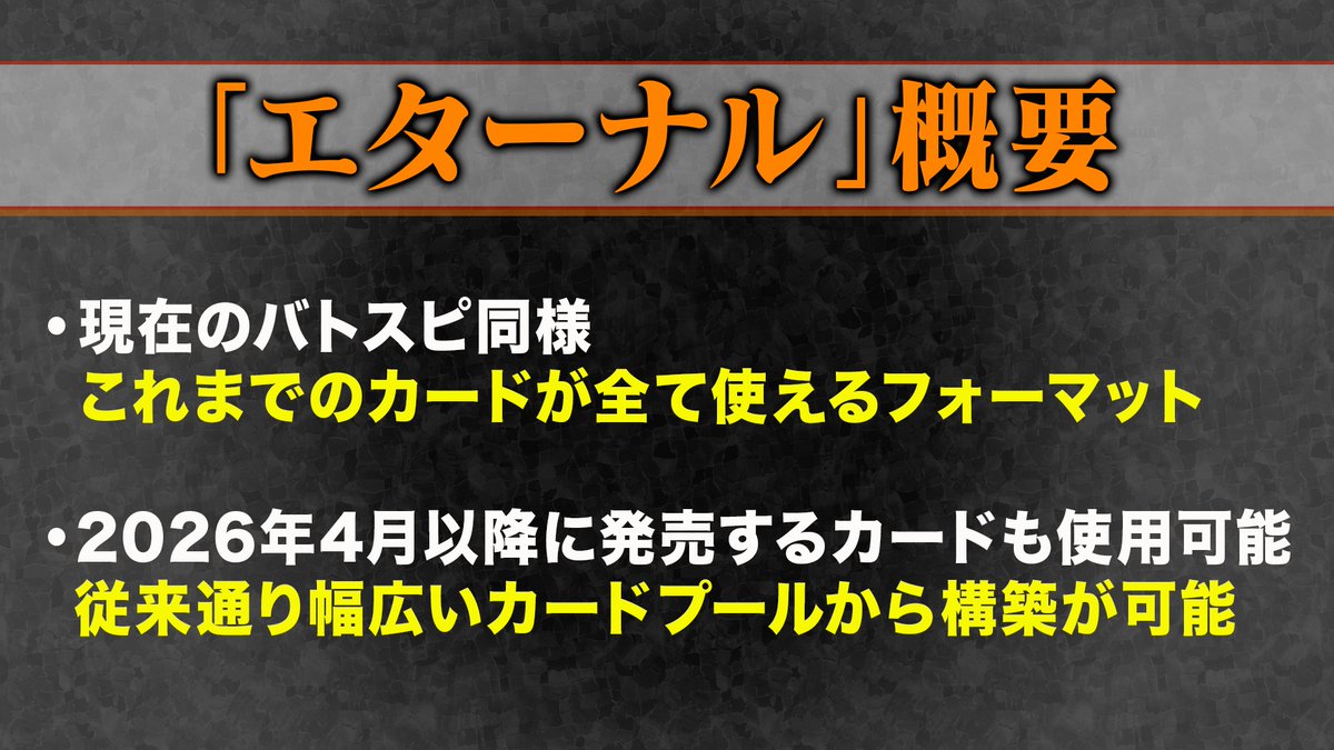 方向性としてはキョウリュウレッドカーニバルでは?バトスピの新フォーマット導入ってアニメ新作に合わせて新規参入をしやすくするために一旦リセットをしたいって事なのかな