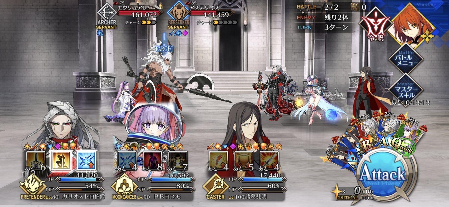全体無敵で宝具やり過ごそうとしたら、敵が無敵貫通持ってた時の絶望感よ。難易度は高くないけど地味に面倒な帝王戦。>>981