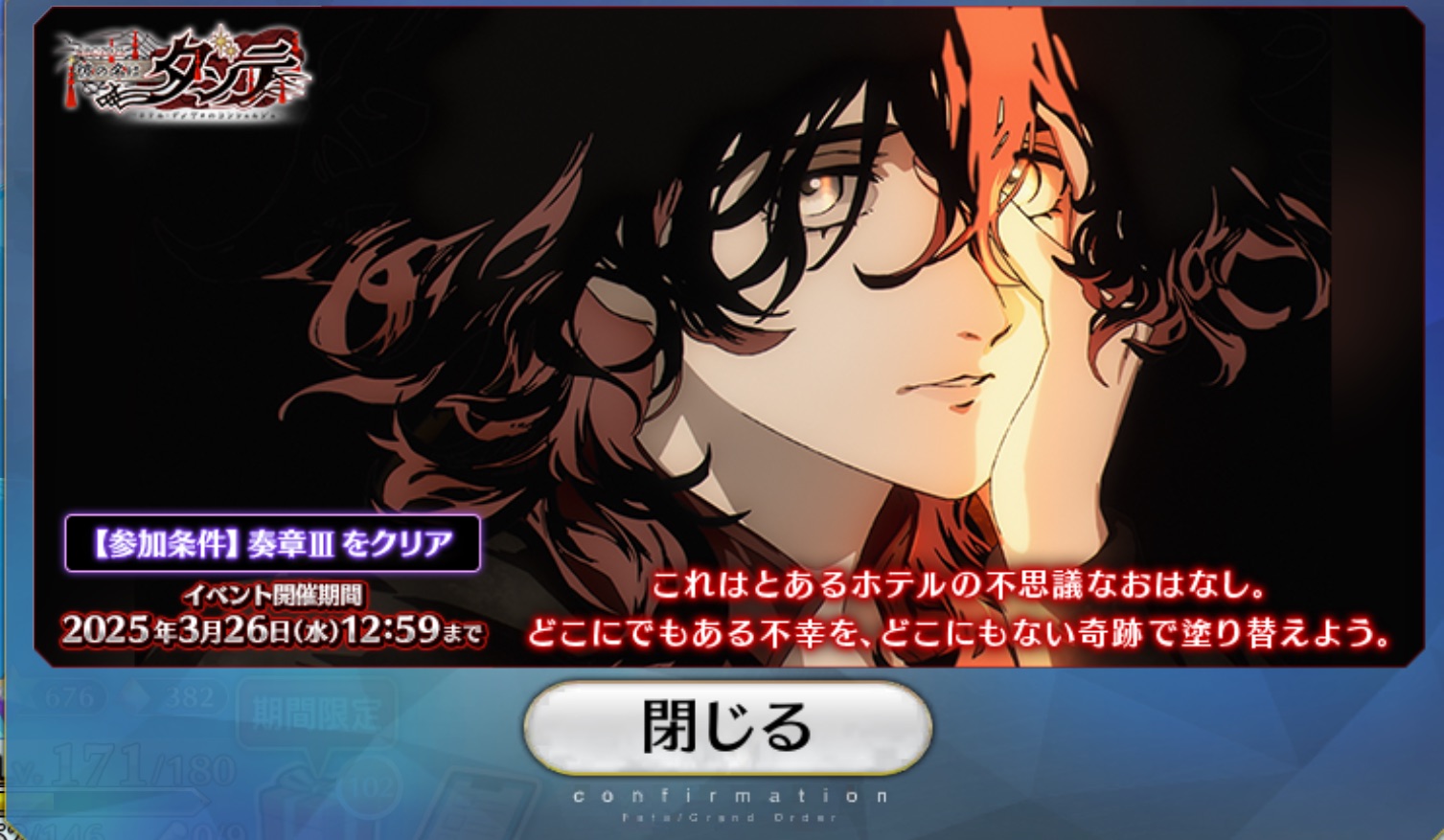 R18関連話題、よくてよ無しのガチャ結果、実装から二週間以内のシナリオ及び開催期間中のイベント内容、進行度依存の報酬、最終再臨や霊衣解放の画像や話題は専用スレにてお願いします
