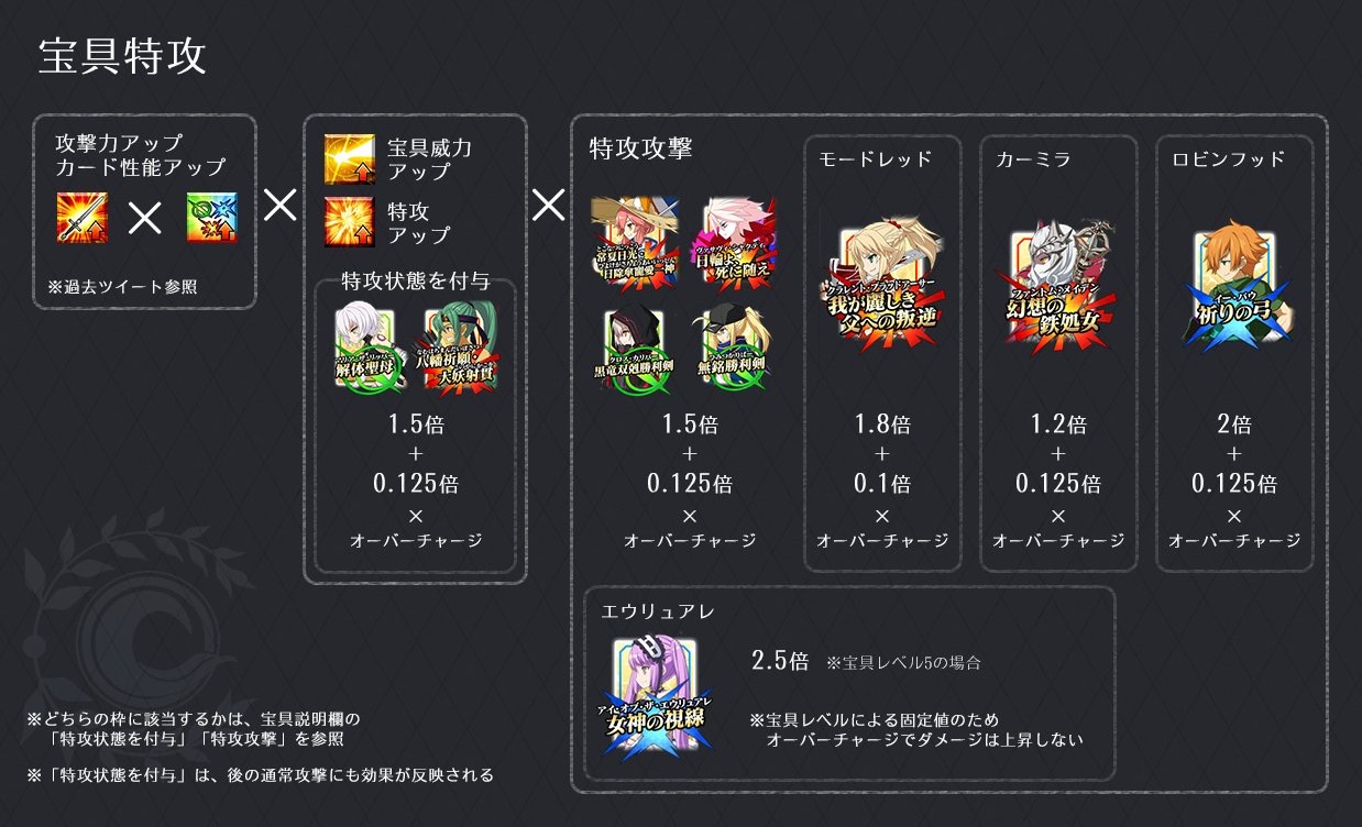 ジャックの特攻と宝具の特攻は違うぞ?ジャックのは付与 愛する者は特攻ダメージだバフセサリー付けるの上手くていいなぁ…オダチェンそこまで使いこなせなくてせいぜいWマーリンと控えのバフ+マスター礼装で盛るのが精一杯。術ネロちゃまで200万ダメ超えた時は嬉しかったけど