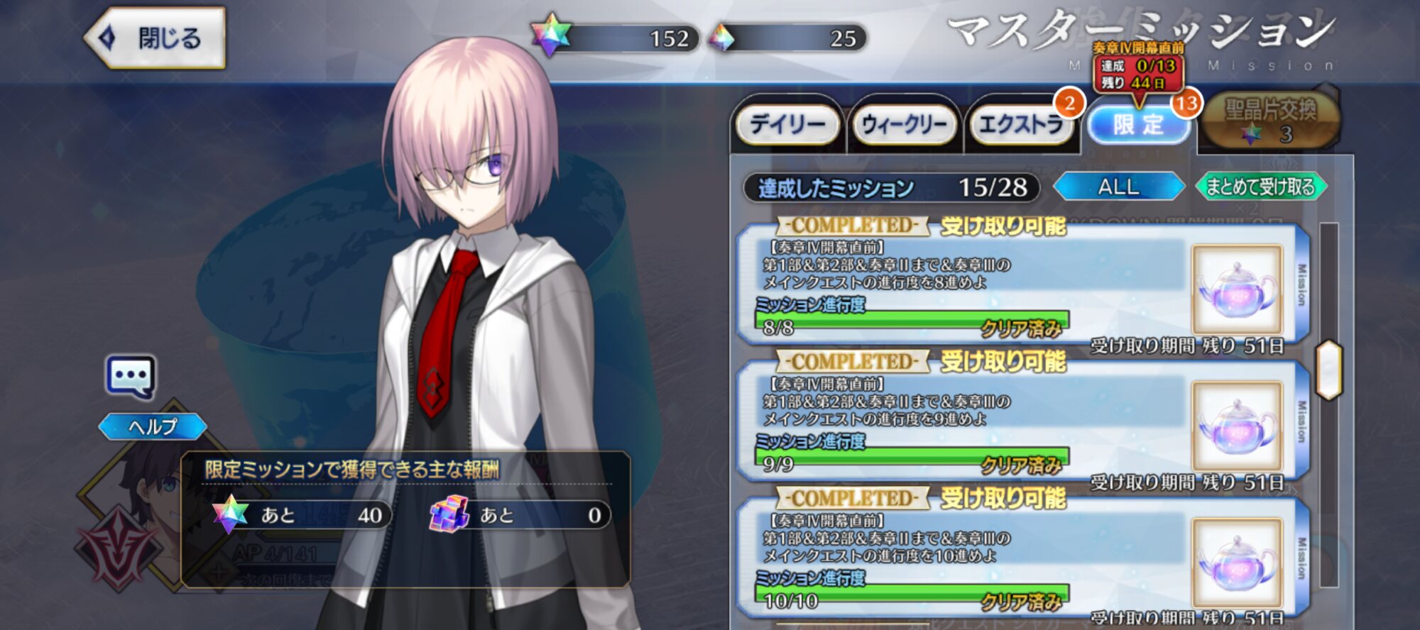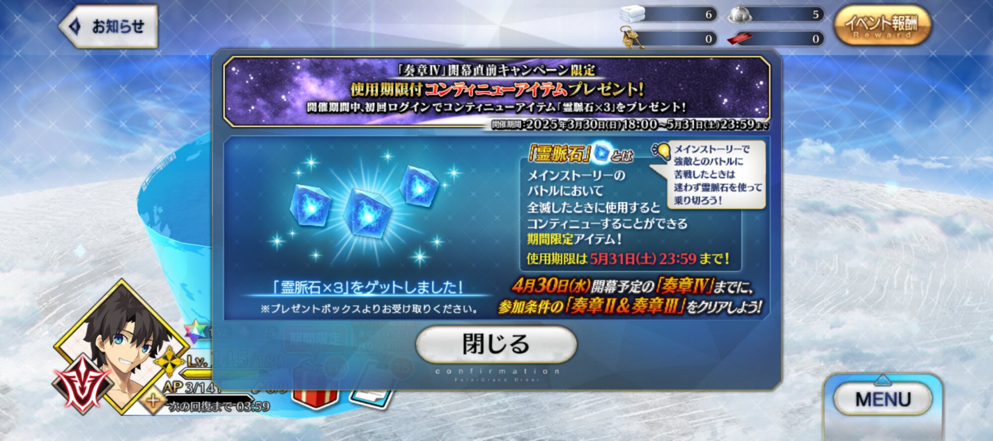 もしやレベル150?やった、グランドサーヴァントをさらに強化できる……