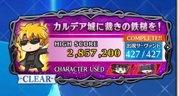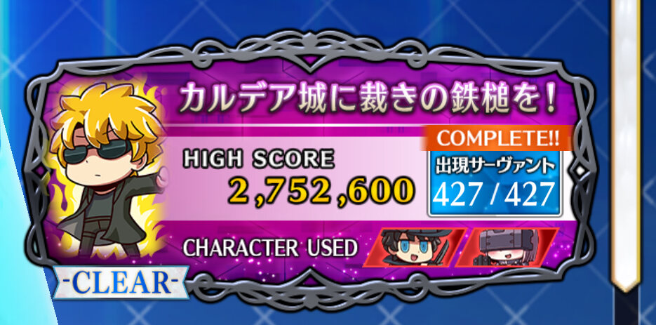 カルデアのマスター達はヤツのケツ拭く神じゃないものねぇ時間ギリギリでクリアできました(なおフルコンプならず