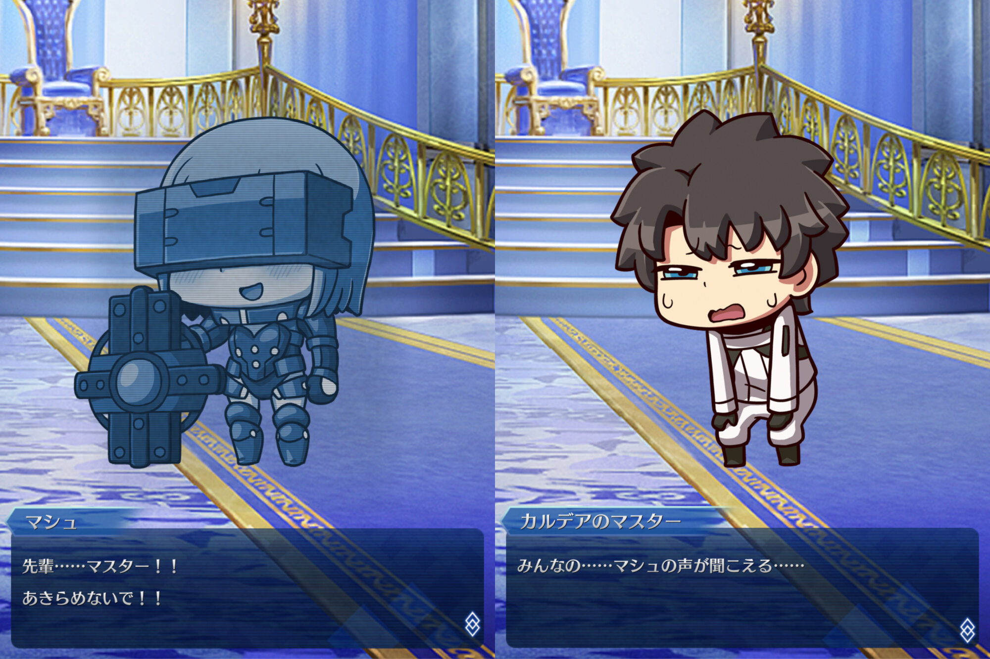 カルデアスは藤丸立香の物語の帰結で、マリスビリー戦はシールダーとカルデアマスターの物語の帰結ってイメージ(マシュの答えはおそらくギャラハッド戦で出す)ラスボスにバレちゃう云々の話だけど