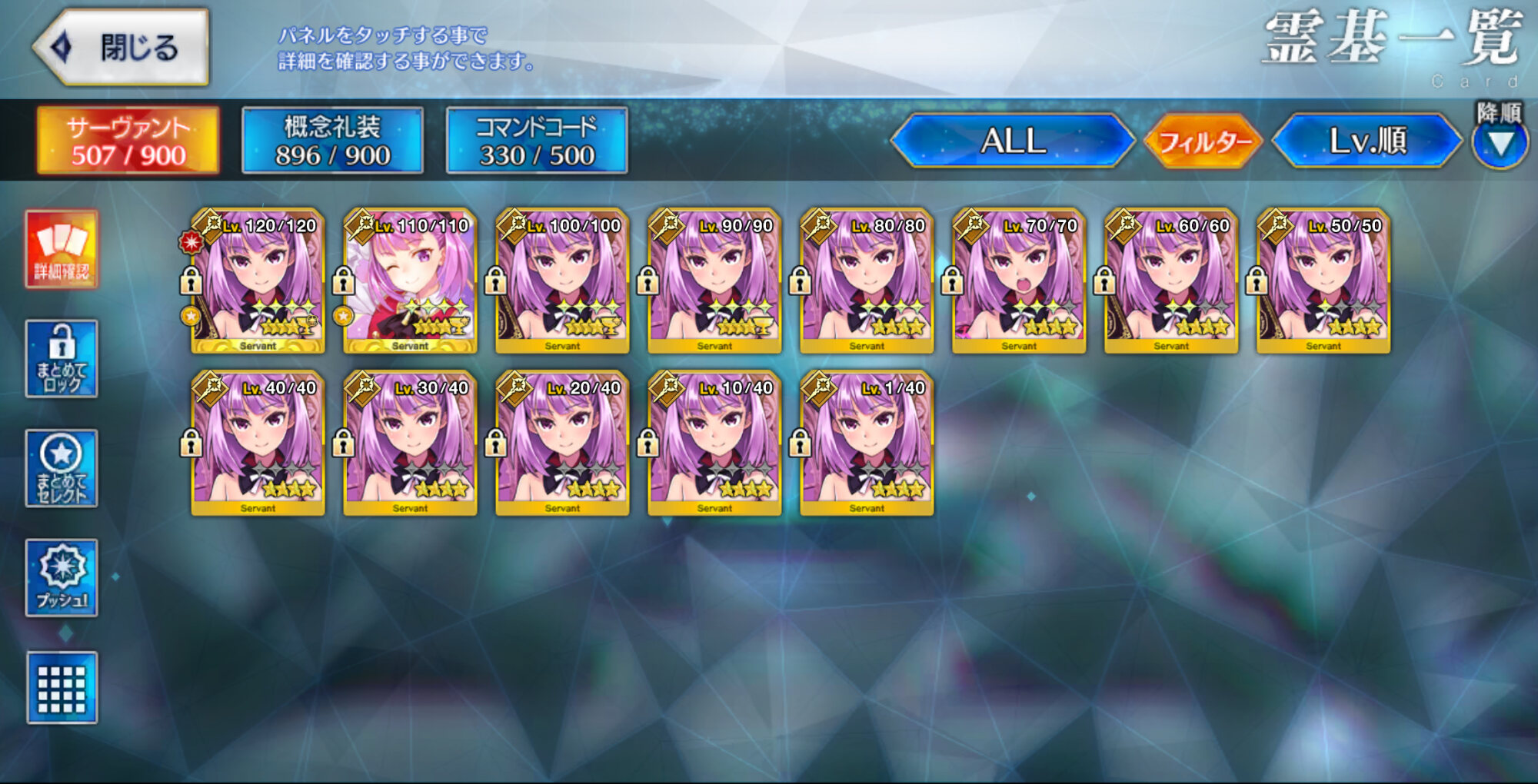 でも今回は2って付いてるし、なんかもう少し前のと違いの分かりそうなのもちょっと欲しくもあるわね、なんとなくそろそろグランドクラス見据えて手持ちの鯖の宝具レベルとか見返してみたら引いた記憶がそんなにない鯖がが凸高めになってたとかありますあります。星4あたりだけかと思ったら把握してない星5鯖とか結構ありましたぜ。福袋で欲しい鯖じゃなくてすり抜けとかだと意外と気に留めてないから記憶に残らんのだな