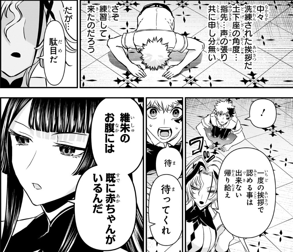 鵺さんの指示で婚約者と偽り儡脊達のいる藤乃家に潜入、そこで維朱の家族である鏖の1人である朱雀と邂逅し、維朱ちゃんが学郎の子を身籠ってることにして、