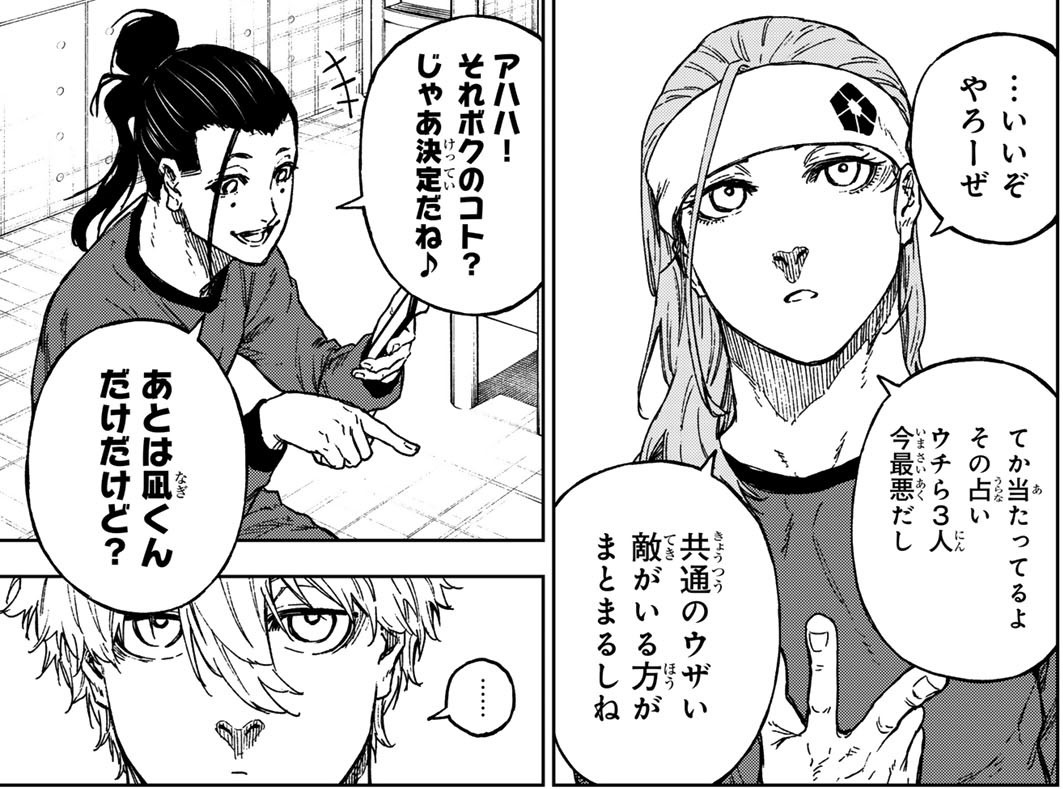 令和の世の今に師匠ポジの「後は任せろ」と同期の「ここは俺に任せて先に行け」のコッテコテの王道ほんと良い酌揺、この手の幻影能力にありがちな、視界を遮断している人間にも通用するのヤバいな