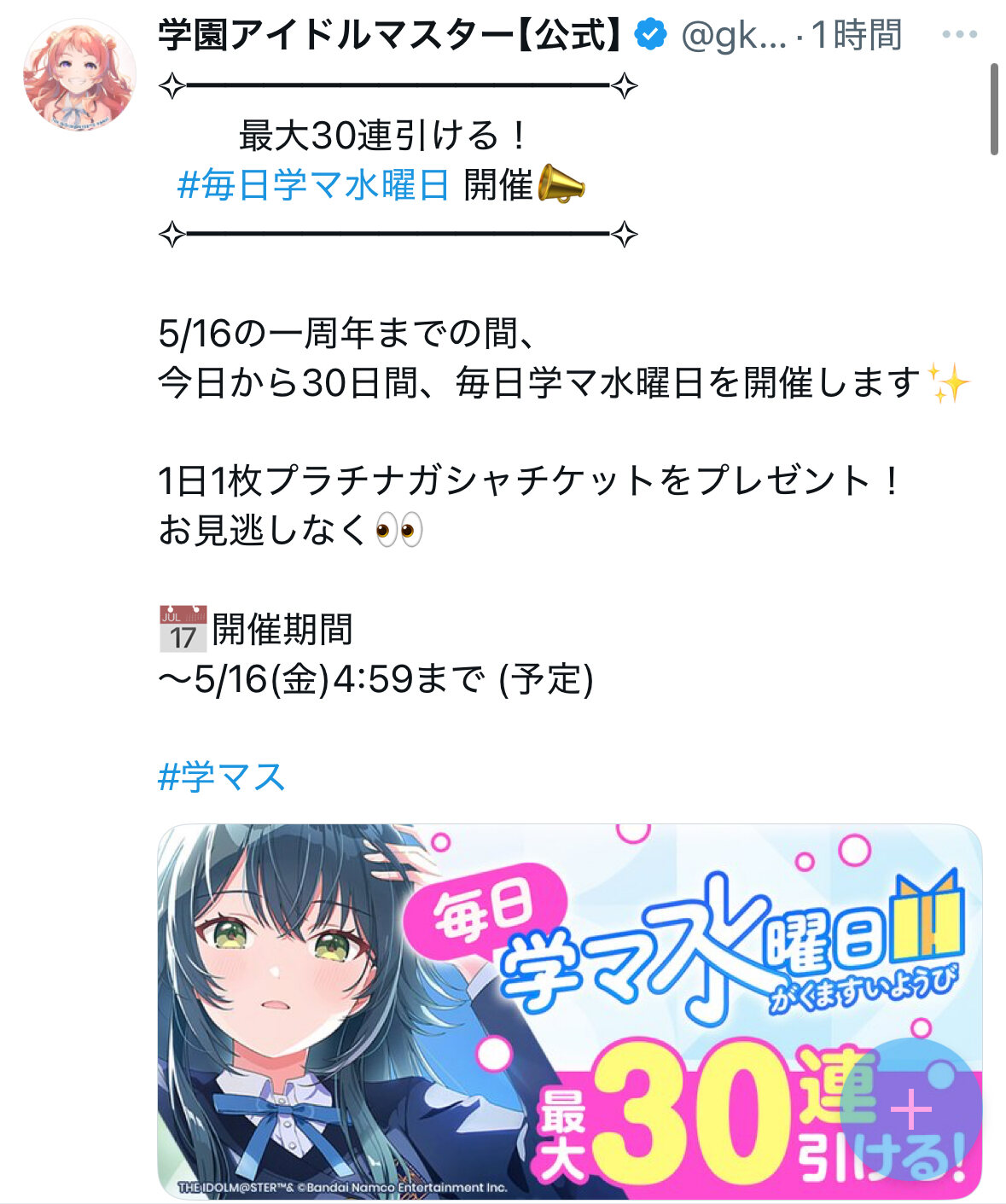 https://x.com/umamusu_animeCG/status/1911683370389770649?t=eQaABZNHvaFarWYfptdBRw&s=19ブルアカは水曜からのキャンペーンや大決戦が来週の火曜までと、ちょっと変則的なあたり次はデカグラマトン編の続きとかじゃろか?