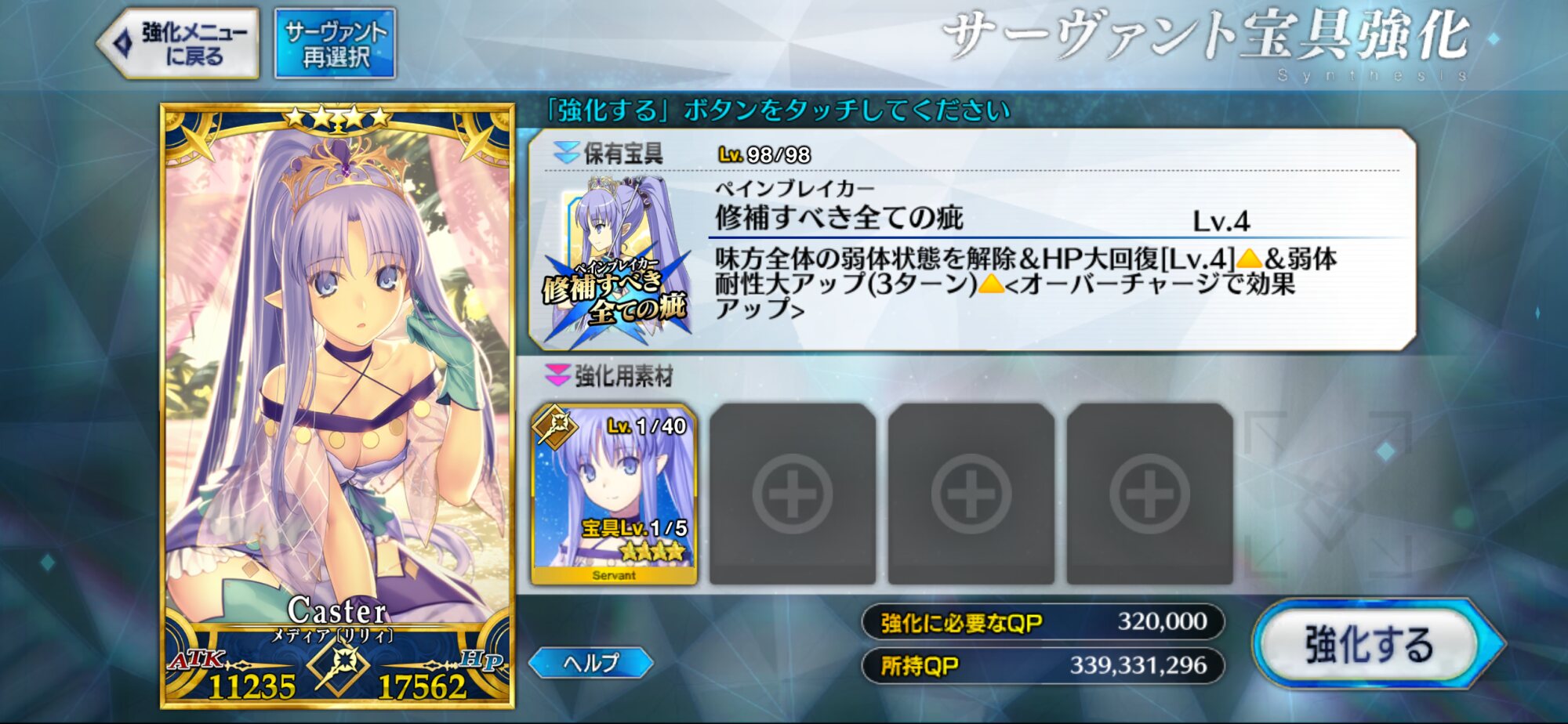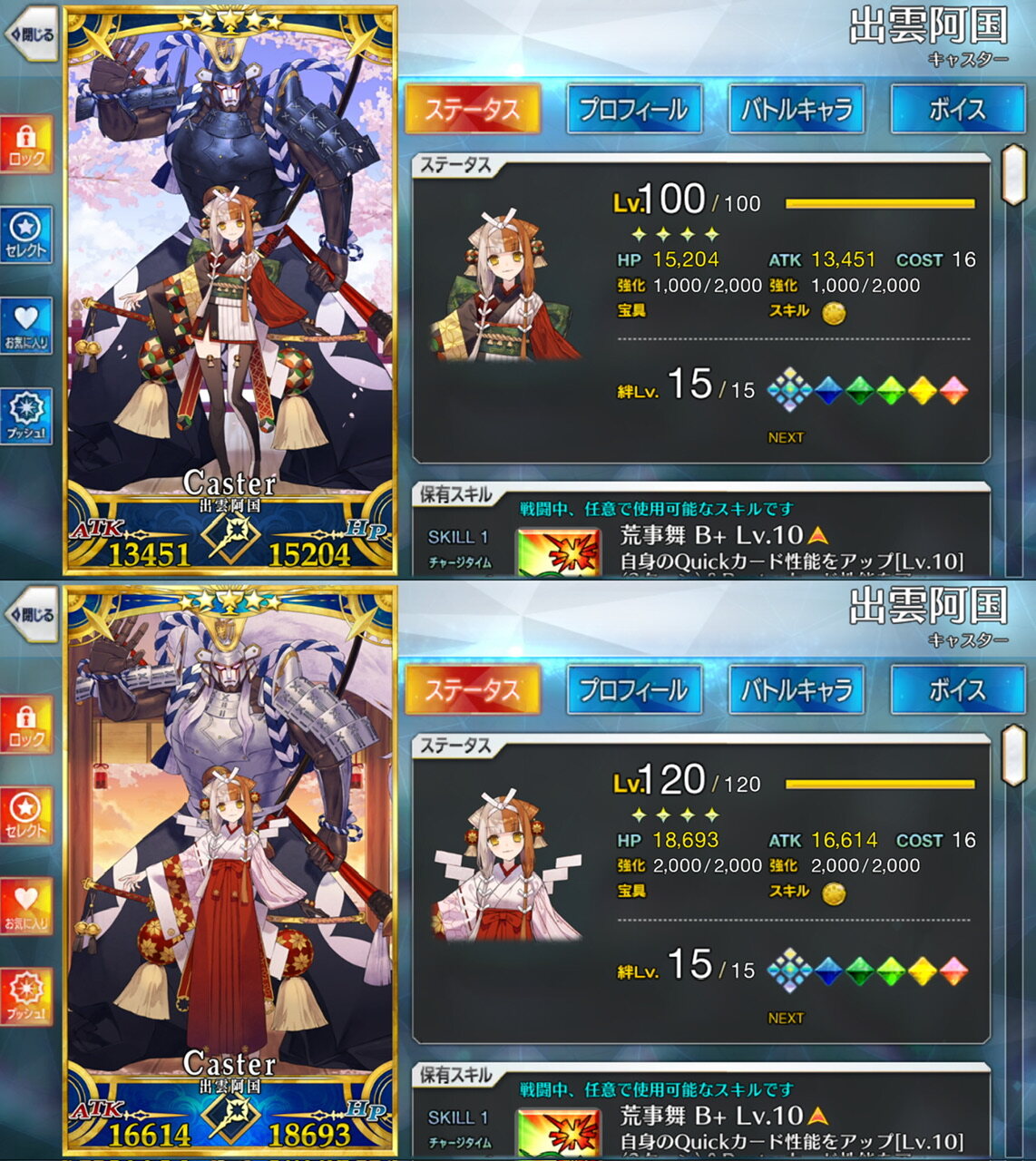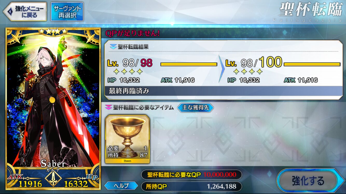 本日ついにコインが必要量に達したので、エレシュキガルを120にすることができました!