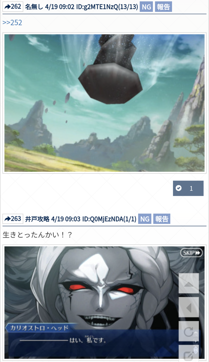 >>1 もしくは >>2 に下記リンクからダウンロードした画像を必ず貼ってください https://bbs.demonition.com/img/9999/ ネタバレ、最終再臨バレに関する話題で書き込むのが躊躇われる場合は以下のスレへ↓ 【第2部 奏章】『奏章Ⅳ 人類裁決法廷 トリニティ・メタトロニオス』攻略・考察スレッド https://bbs.demonition.com/board/12602 Fate/Samurai Remnantを語るスレ11(ネタバレ有り)https://bbs.demonition.com/board/11025 幕間の物語を主体に語るスレ その4【ネタバレアリ】https://bbs.demonition.com/board/11515 最終再臨イラストについて語るスレ https://bbs.demonition.com/board/1308 絆礼装を語るスレ【ネタバレ注意】https://bbs.demonition.com/board/1339 型月ネタバレ総合雑談スレ3 https://bbs.demonition.com/board/4648 よくてよ無しのガチャ報告は下のスレへ ガチャ報告スレッドその9 https://bbs.demonition.com/board/11902 公式HP https://www.fate-go.jp無駄こそ文明、無駄こそ余裕よ