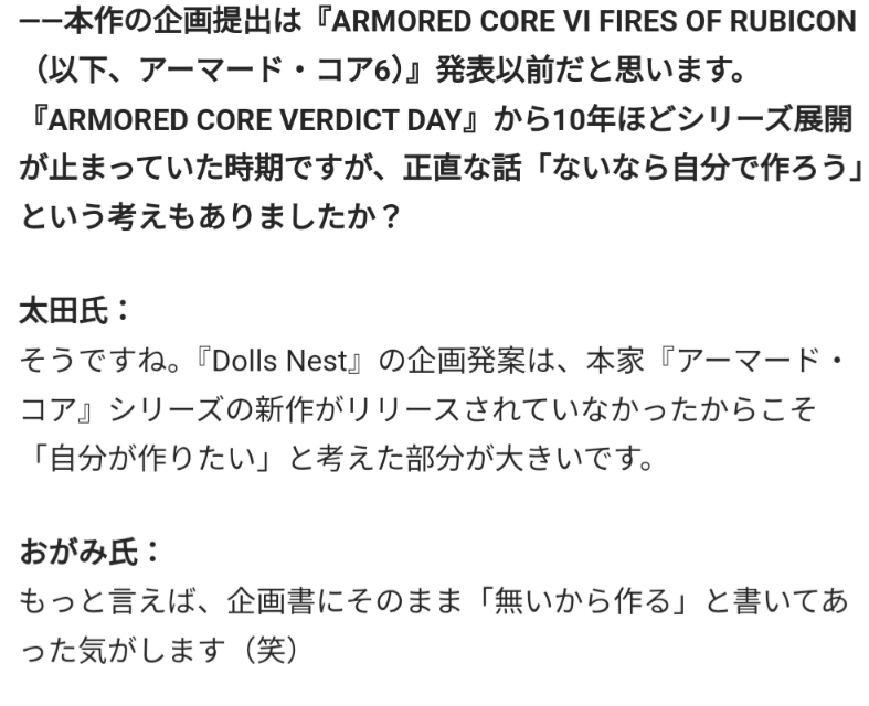 ???「真下がガラ空きだ。」マジでアーマードコアの新作が出ないから自分達で作ることにしてたんだな、ニトロプラス……