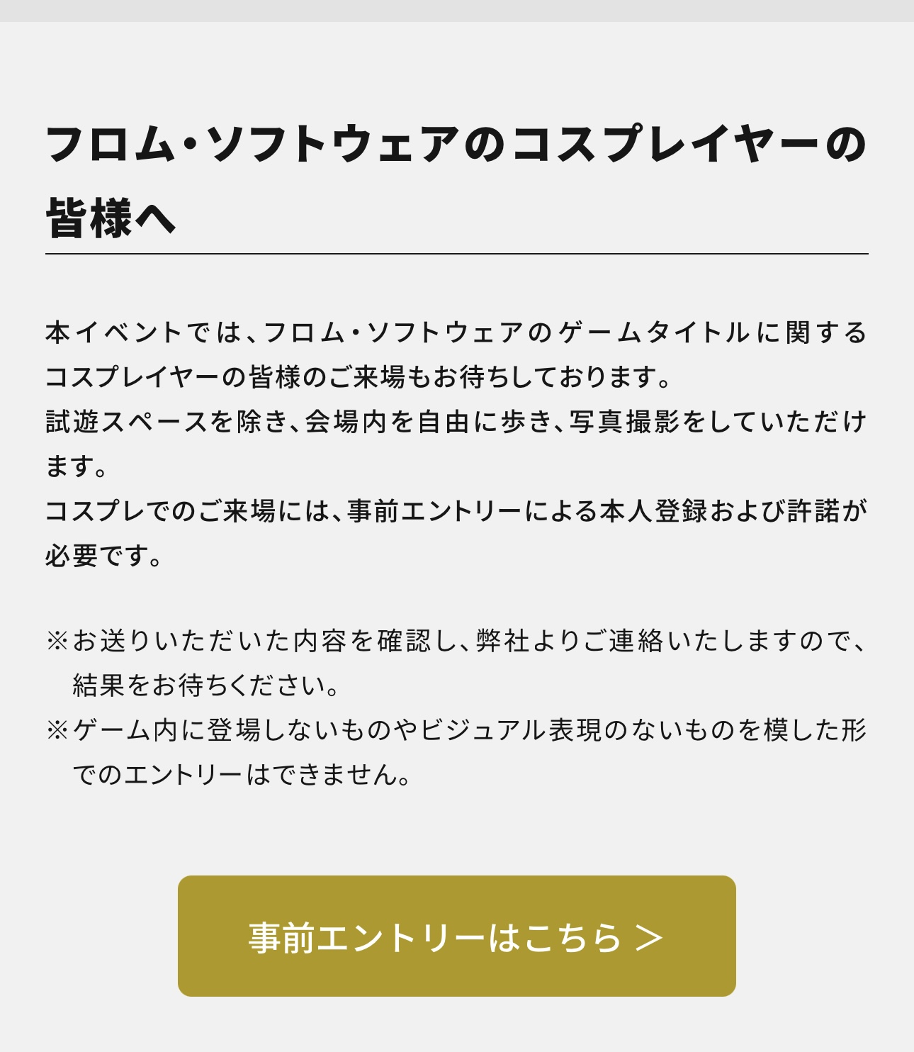 って言い張るつもりだったのに!!フロムコスプレイヤーとか、すごい光景になるな…
