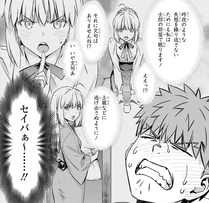 浴衣か何かに着替えて髪も下ろしてるおやすみモードセイバー可愛くて大好き>>53