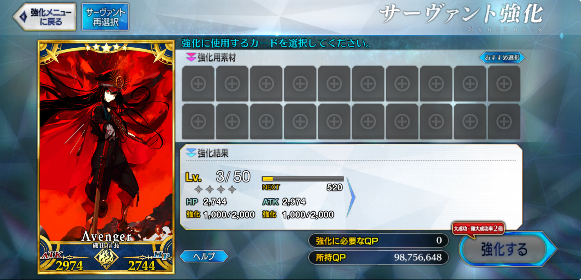 ドカ食いも控えようねQPと種火の余裕があればエウリュアレも120にしたいところ