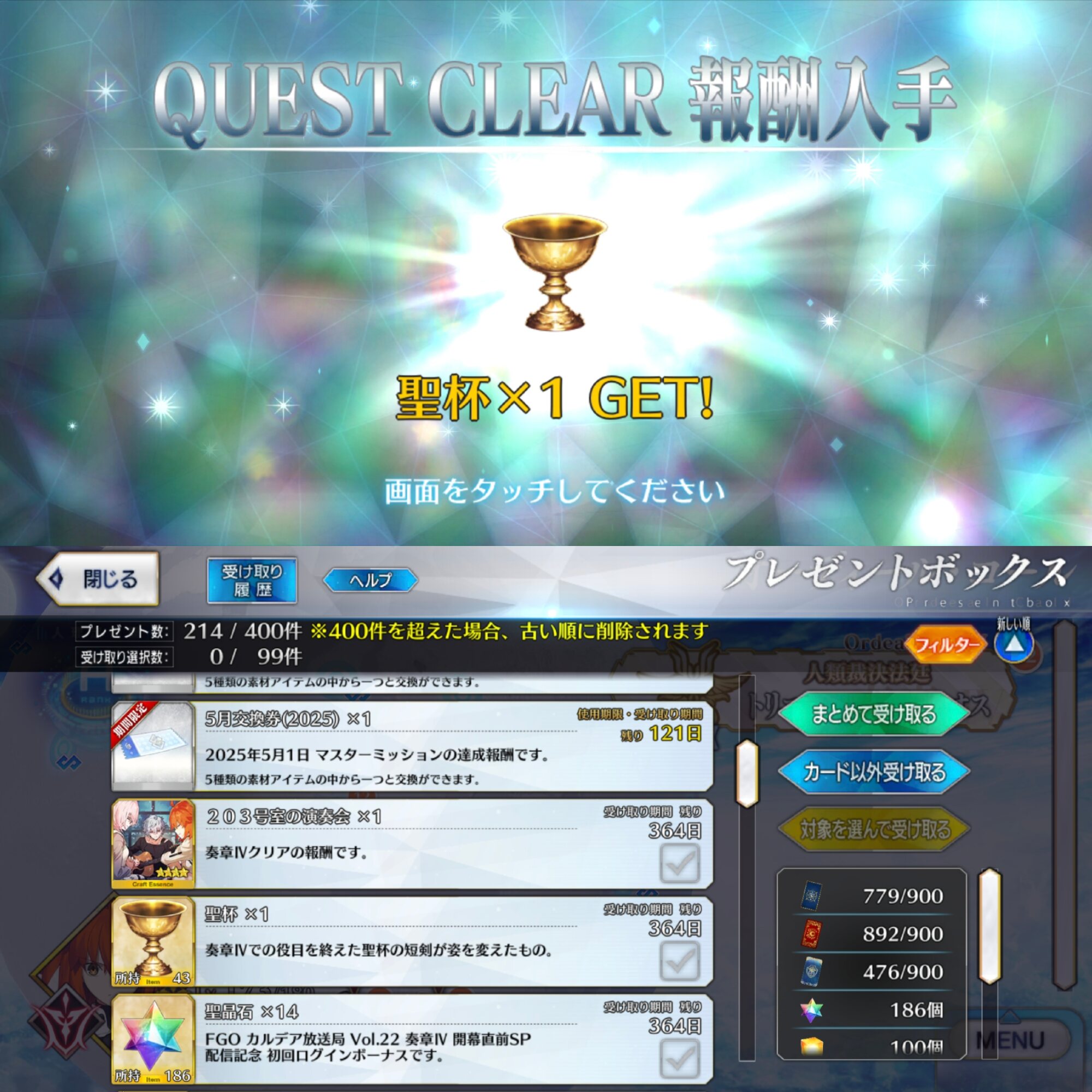 聖杯入れないときちんと聞けないかとりあえず。クリアしたらマシュを100にする。