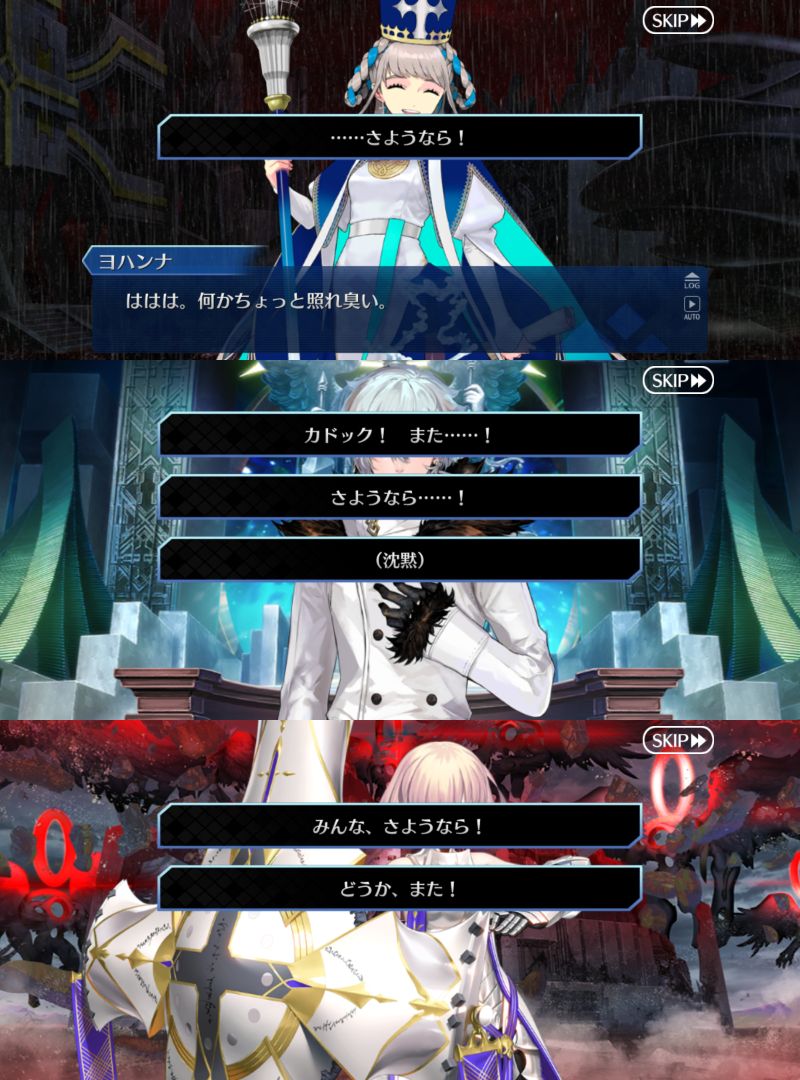 自分は罪こそあれど罰はない、そもそも邪悪でもない、と答えたら、罰は受けるけど人理修復してからにしてくれ、って主張が出てきてそれでいいでしょう、ってなったなあクリアしました