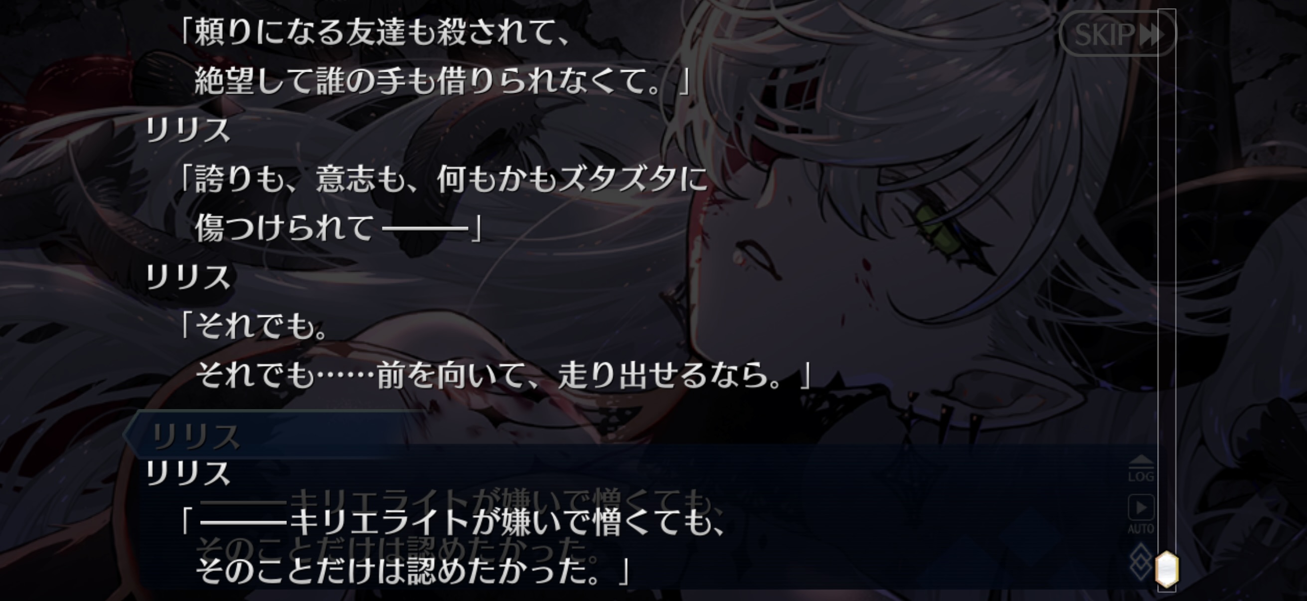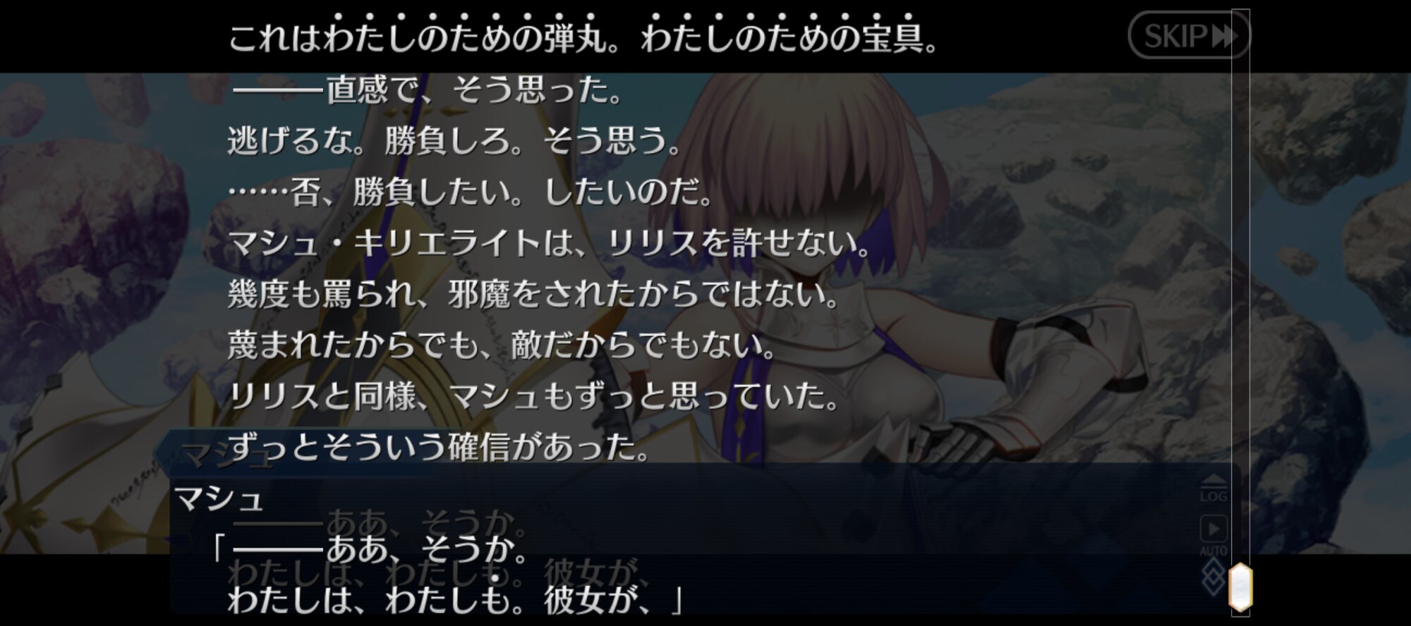 リリスのマシュの無自覚の無垢さを気持ち悪い!って言ってきて嫌ってメスならぬハサミを入れてくれるキャラ、すごい新鮮で面白かった。もちろん彼女のやり方を良しとは言わないし許せるかは人によるかもしれないけど嫌いっていう人が1人くらいいてもいいよねと思った。個人的にマシュは二部から舞台装置感が否めんなあと思ってたので内面ガッツリ掘り下げされたのもすごい良かった。