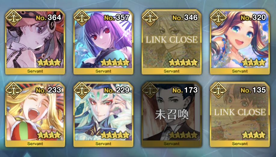 それ以外(とメタトロン)はCLOSEされてないけど、こっちもアヴェンジャーと同じくいずれは…って事になるのかもね水着サンタぐだぐだを除くと朕とホームズが残るのが美味しいよね