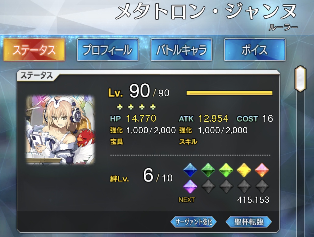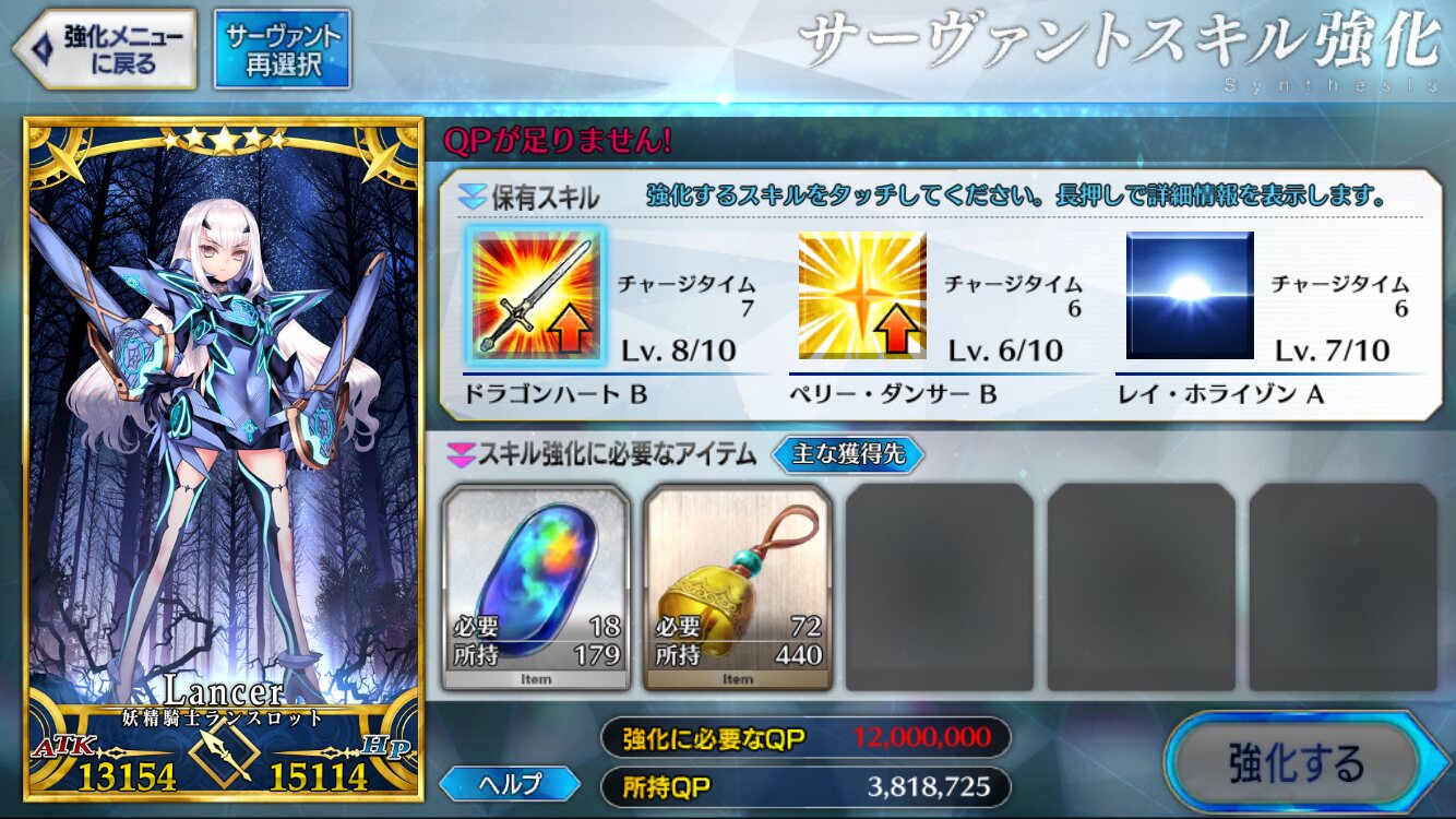 ただ素材と相談して出来る限りでいいので攻撃(カード、宝具)バフに拘るものは上げていたらベター。強化はまぁできる限りやっていたら尚、という感じですね。(バフが高くなるならとりあえずやっておいて損はないです)>>949
