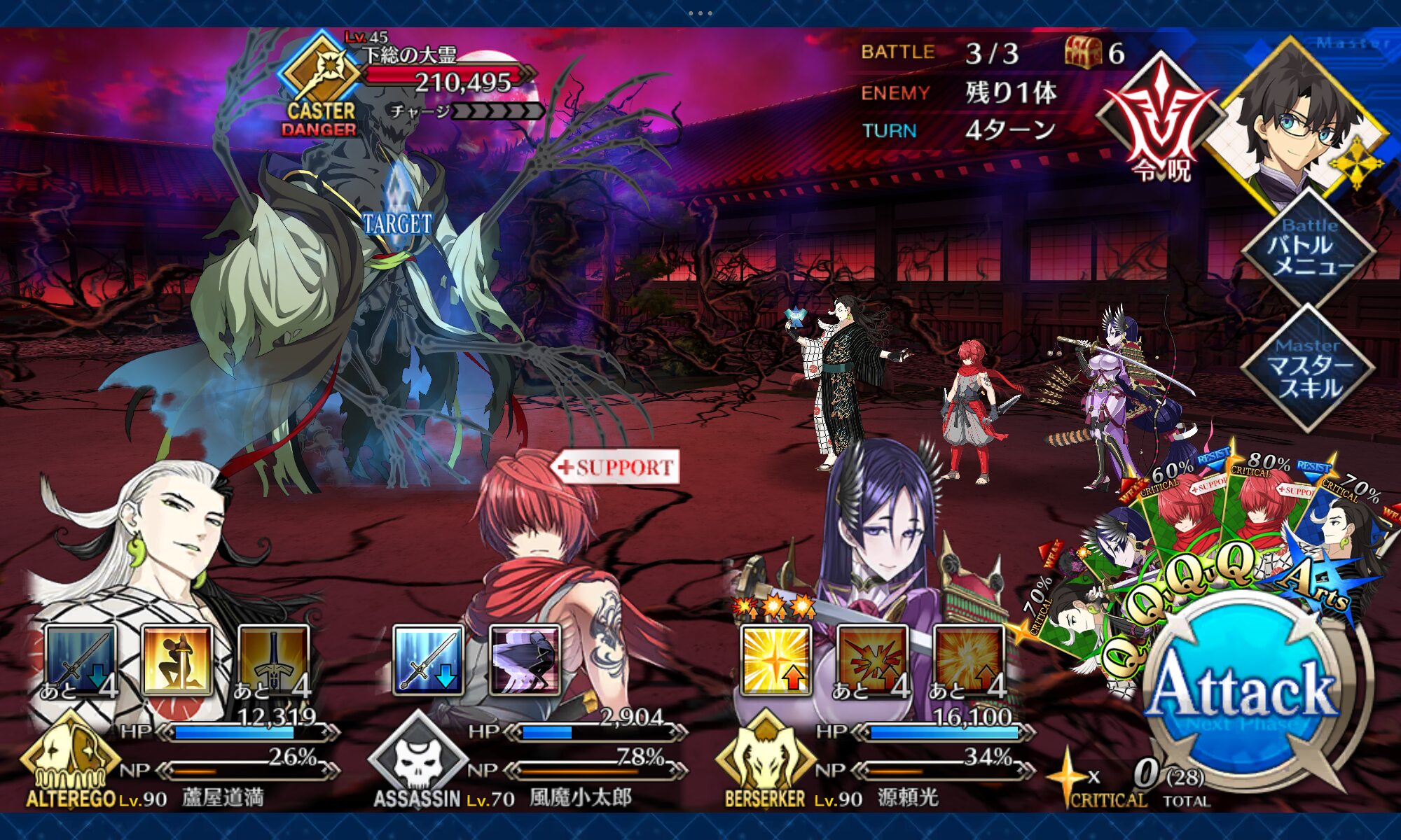 令呪使いながら時間かけて進めるのに躊躇いないならもっと火力特化礼装にしてもいいし、メディアさんみたいに最低1回は確実に宝具で攻撃できそうなキャラなら最初からそれで良い>>927