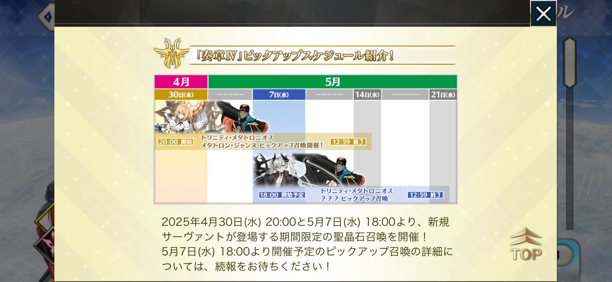 公式のスケジュールによると7日水曜日から新しいガチャ始まるみたいですよ>>73