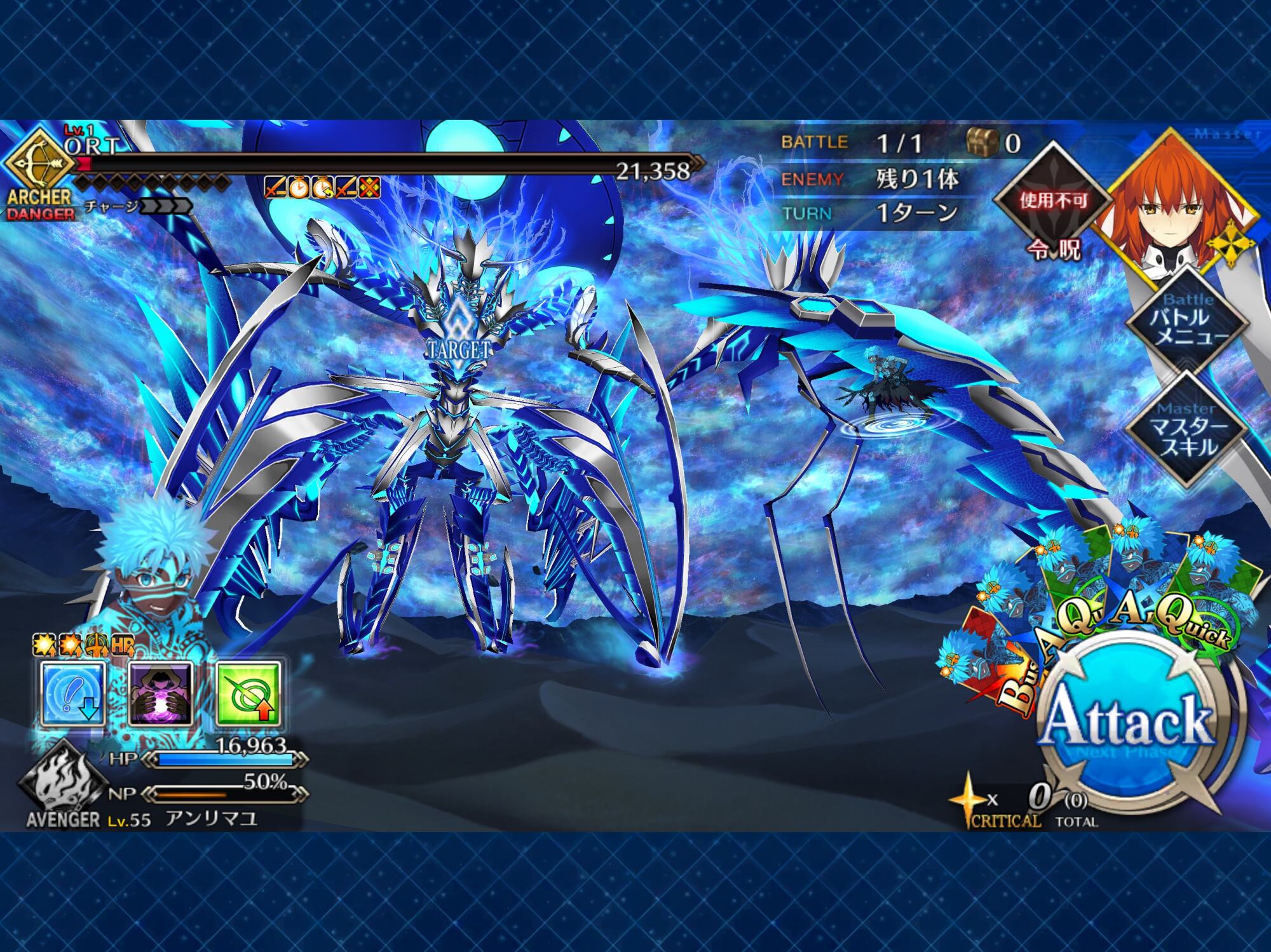 試しに水着スカディでやってみた、対アーチャーオーバーキルなしバフなしBBAが23%で、ABBが15%だった