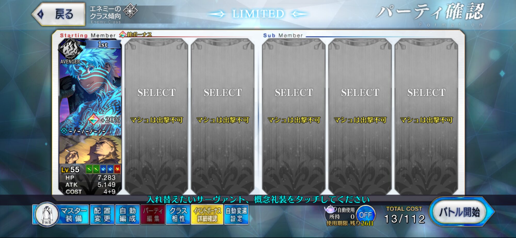 ・マシュはこまめに出撃できるかチェック