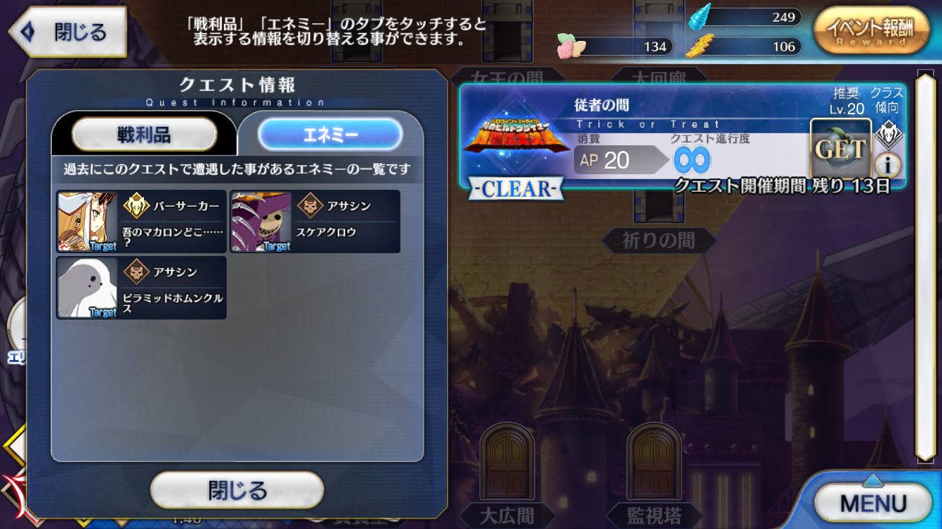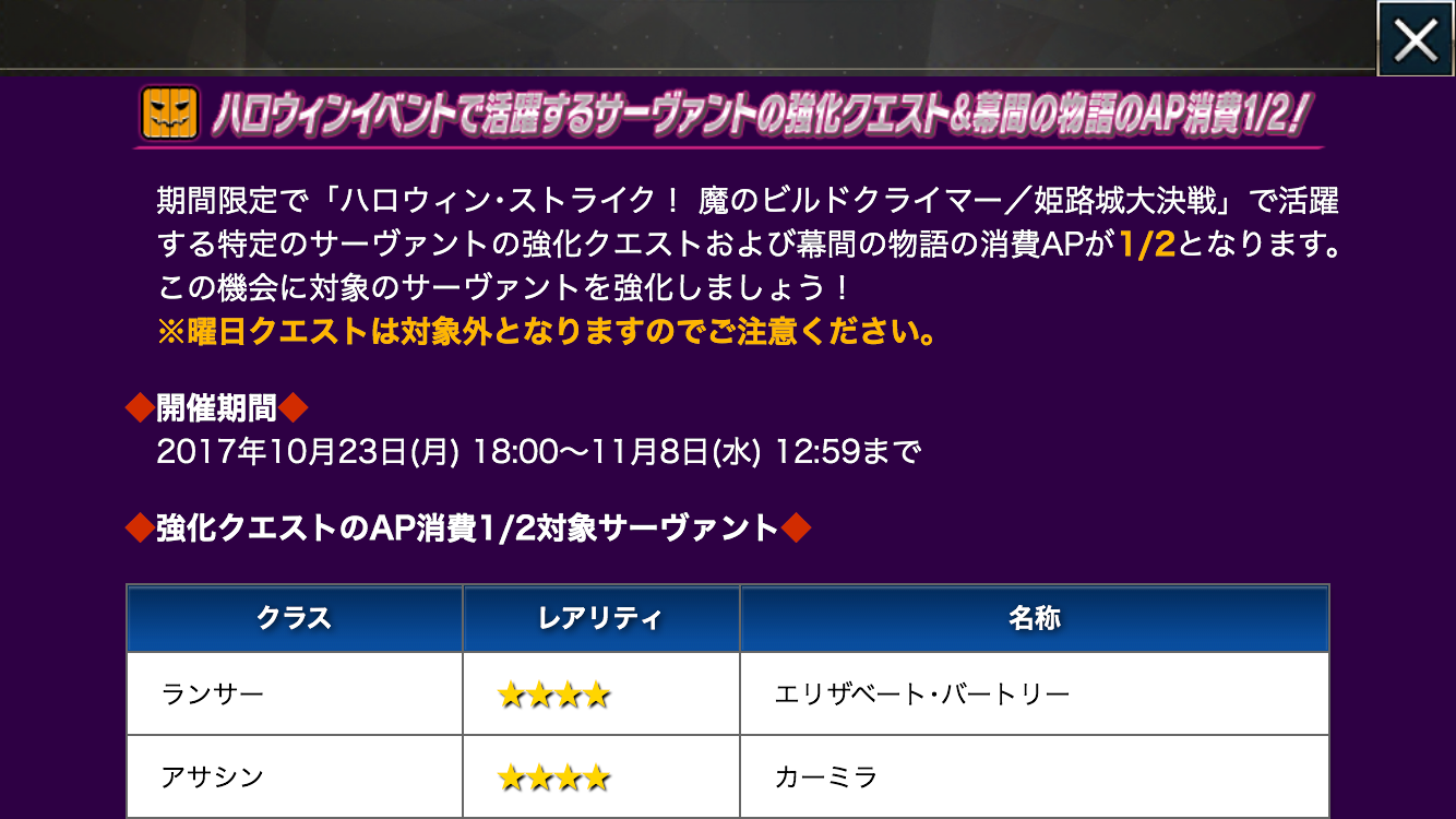 ここで姫路城ぶっ込んで来るあたりやっぱり公式ってすごいなっておもいました(小並感)特攻鯖のアサシン枠、カーミラさんしかいない……他のクラスは全員いるのに……パライソちゃんも加わってくれない……?1.5部の新規アサシン仲間のよしみで……