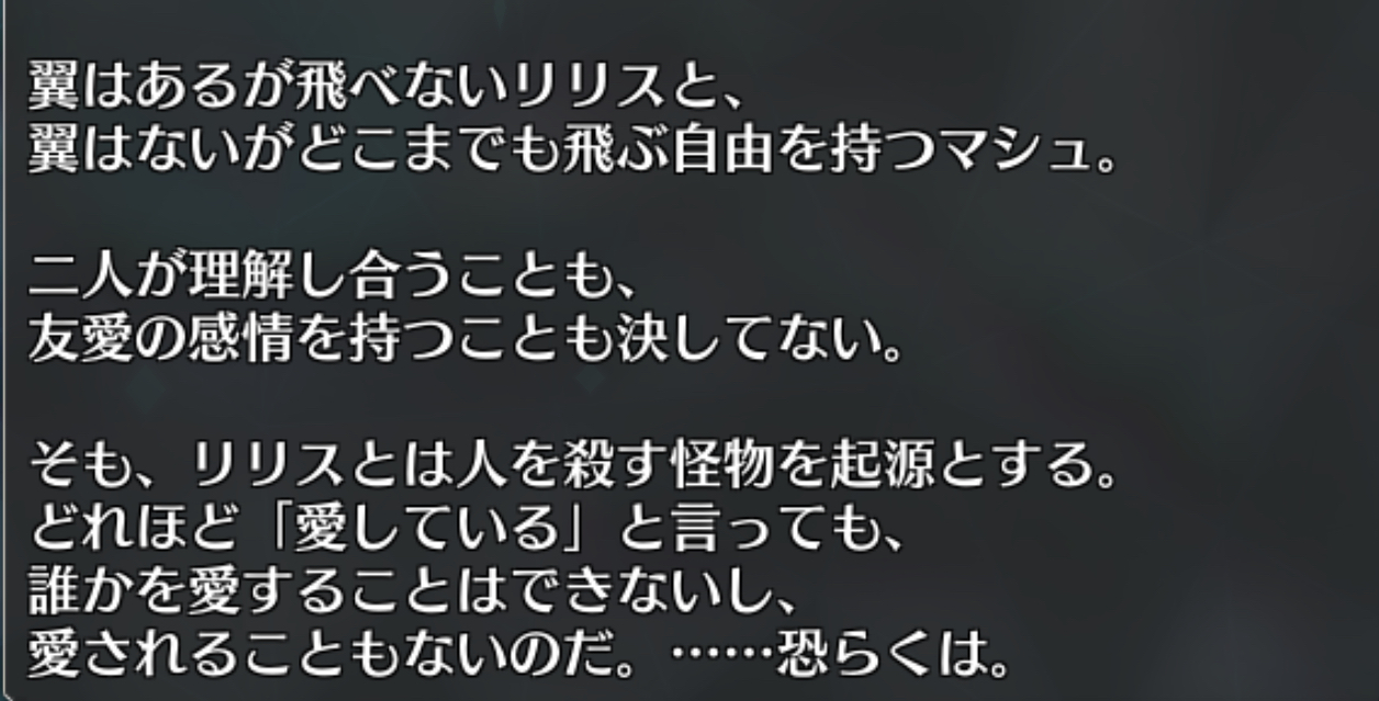 リリスって悪い言い方したらマシュの粘着アンチだしな>>962