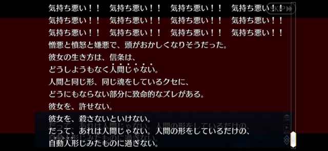 最初は色々不穏だったしマシュが違うものに変わっていくのホラーというか精神的グロ叩きつけられたけど