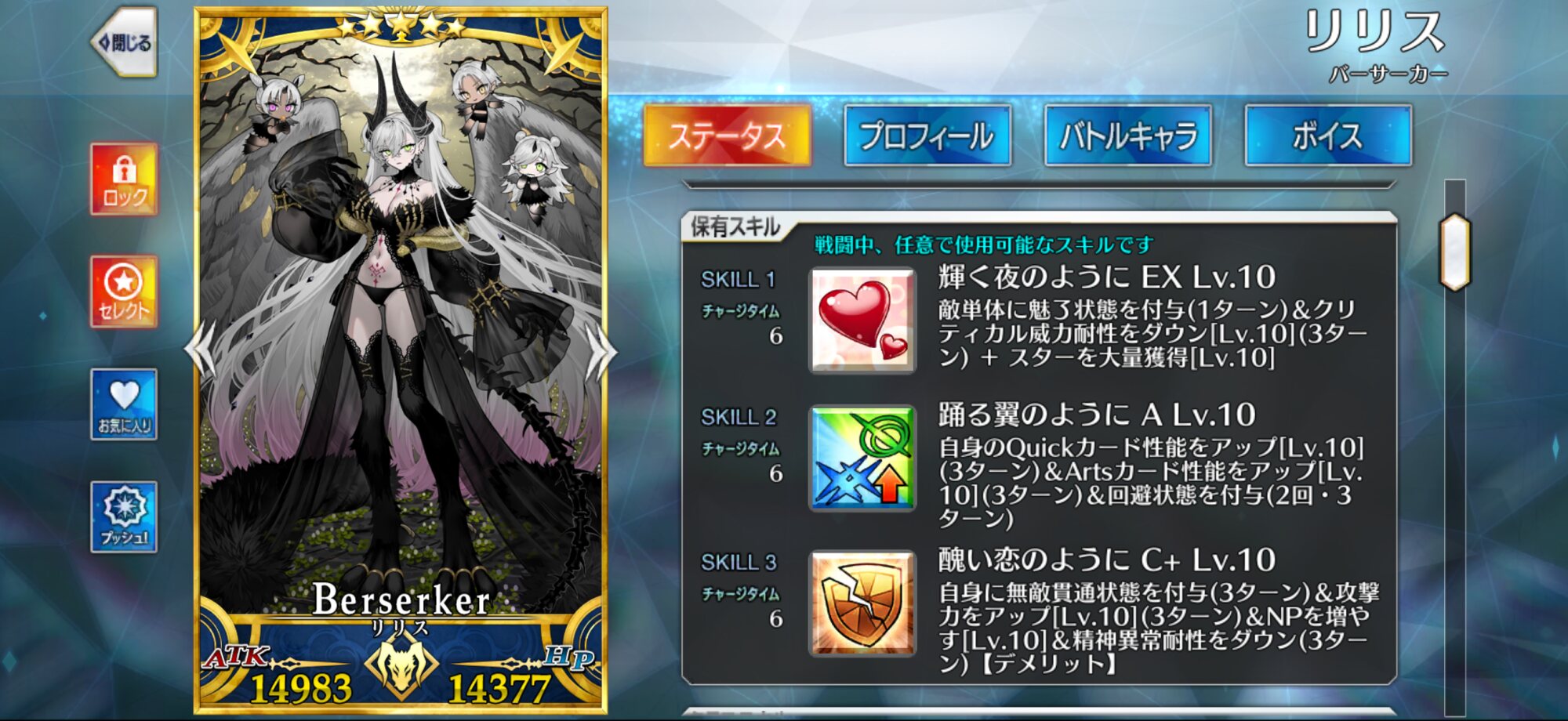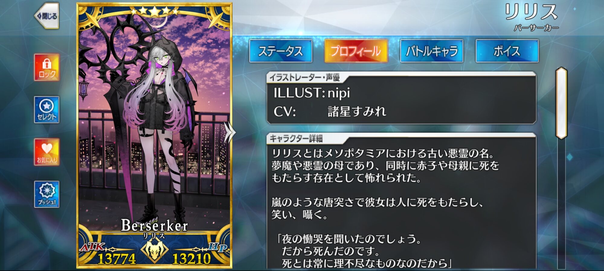 私は余程の事情が無い限りは基本的にサーヴァントの再臨は三臨で固定してるんですけどリリスに関してはいつまでも鋏を使っていてほしいです