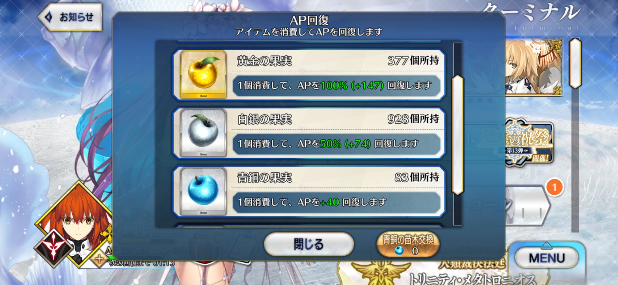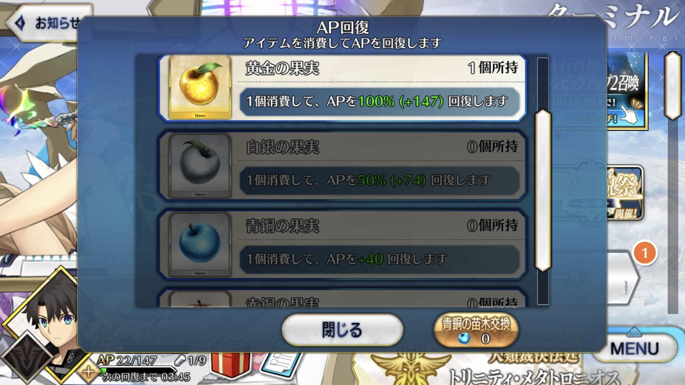 今回の種火クエAP半減で50個くらいリンゴ使って後80個しかない。>>902