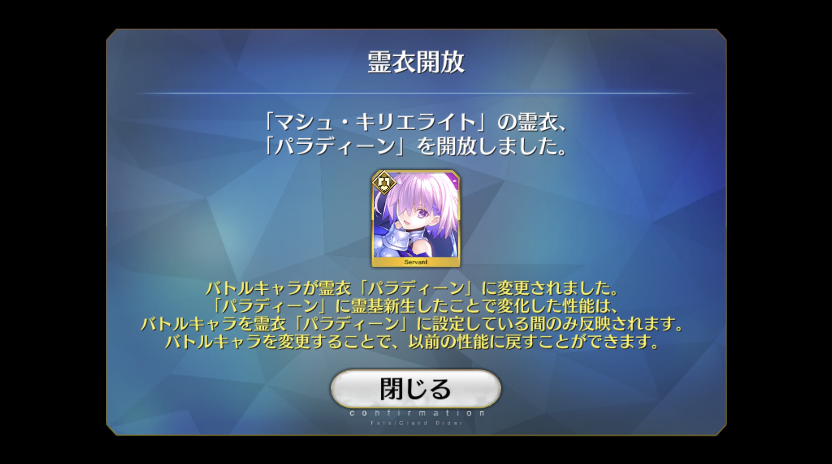 どっちかと言うと「お母様の役に立たないと捨てられちゃうよ」とヴァーヴァン・シーに言ってるようなものかと。おれ、ギャラハッドが実装されたら、ランスロット、マシュ、ギャラハッドでパーティ編成するんだ…
