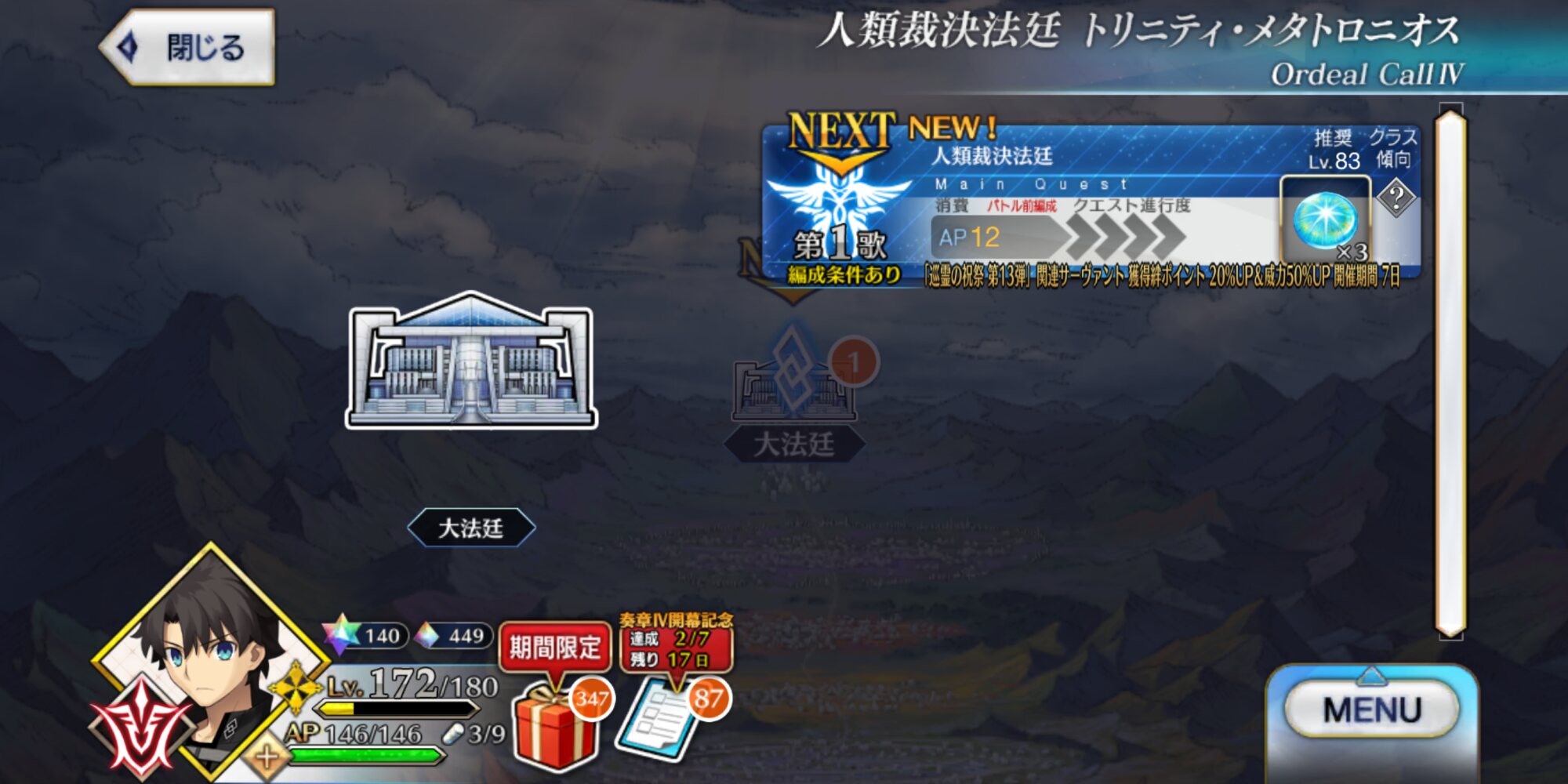 奏章Ⅳでおもしろ男突き抜けた感あるな冠位戴冠戦まで間のある今のうちにレンズと聖水集めとかないとなぁ。メタトロンとリリスのせいで在庫がない