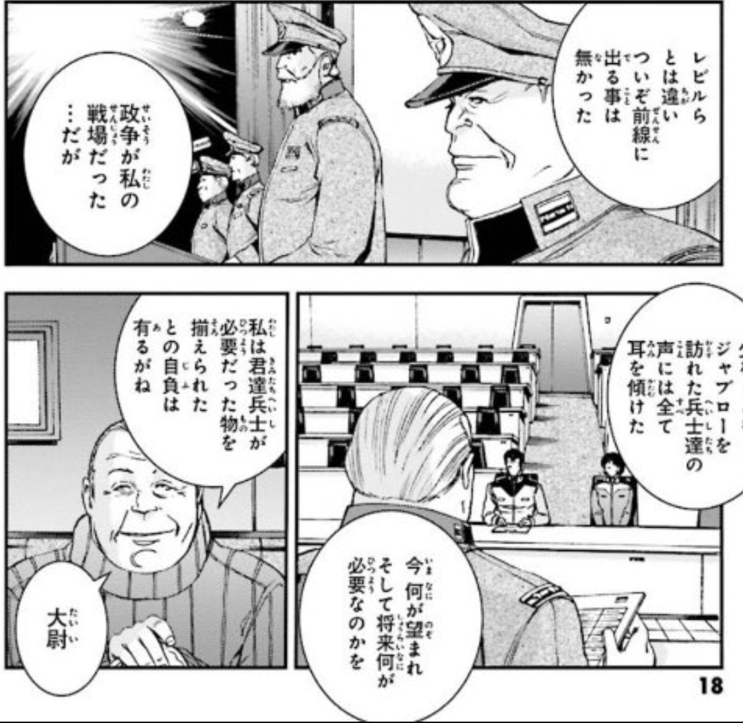 平和ボケというか平和を維持するのに慣れていないというか。今回の話でも軍警が警戒しているのがジオンの連中だけというのが危機に関して慣れていない感がある。すぐに足元でもっとヤバいことが動いているしあの状況でエグザベ君を亡き者にしたらジオンが介入してくる口実を与えちゃうし何というか軍警が急いで作った急造組織感がある>>96