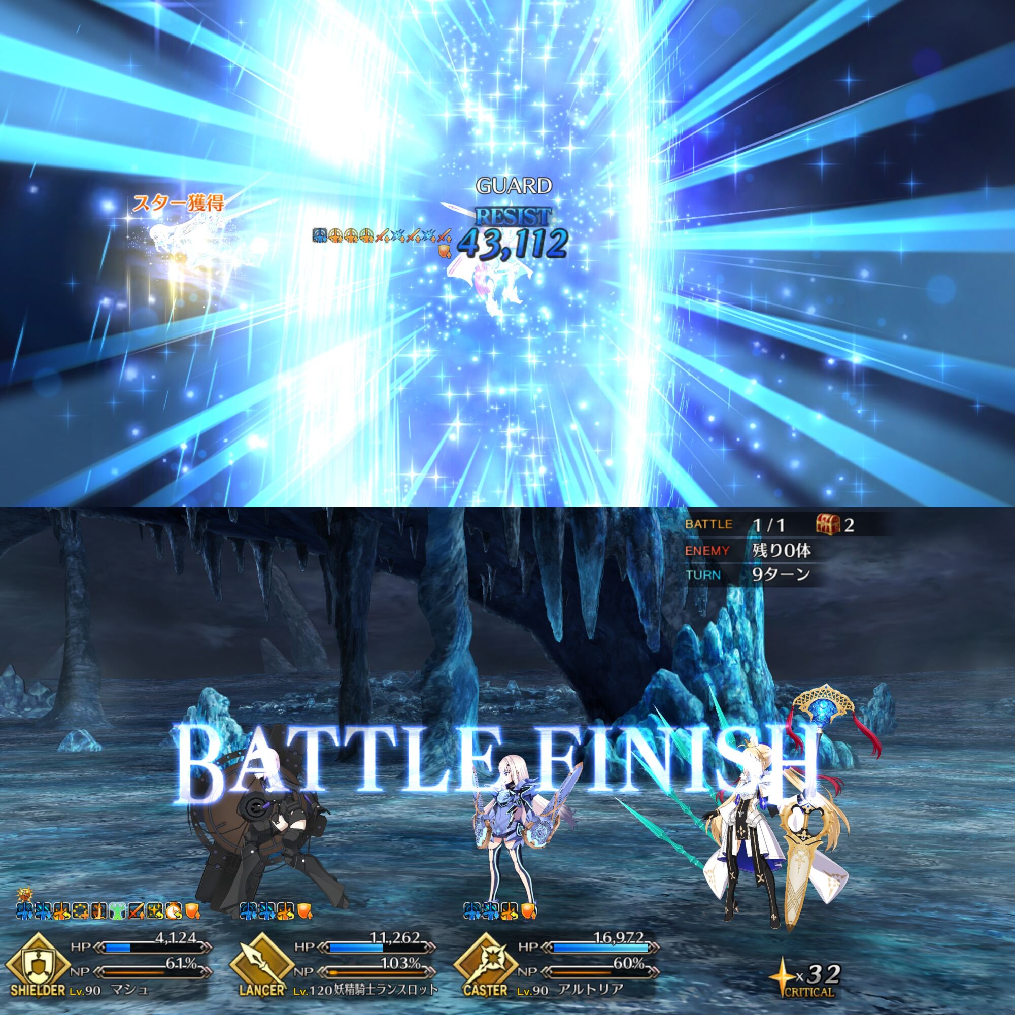 私も初見は9クリアでした。盾で受ける系ミッションと9ターン以内クリアは相性悪いので、1回で全クリはたぶんパーティー編成タイトかつ、カード運も問われるんじゃないですかね>>959