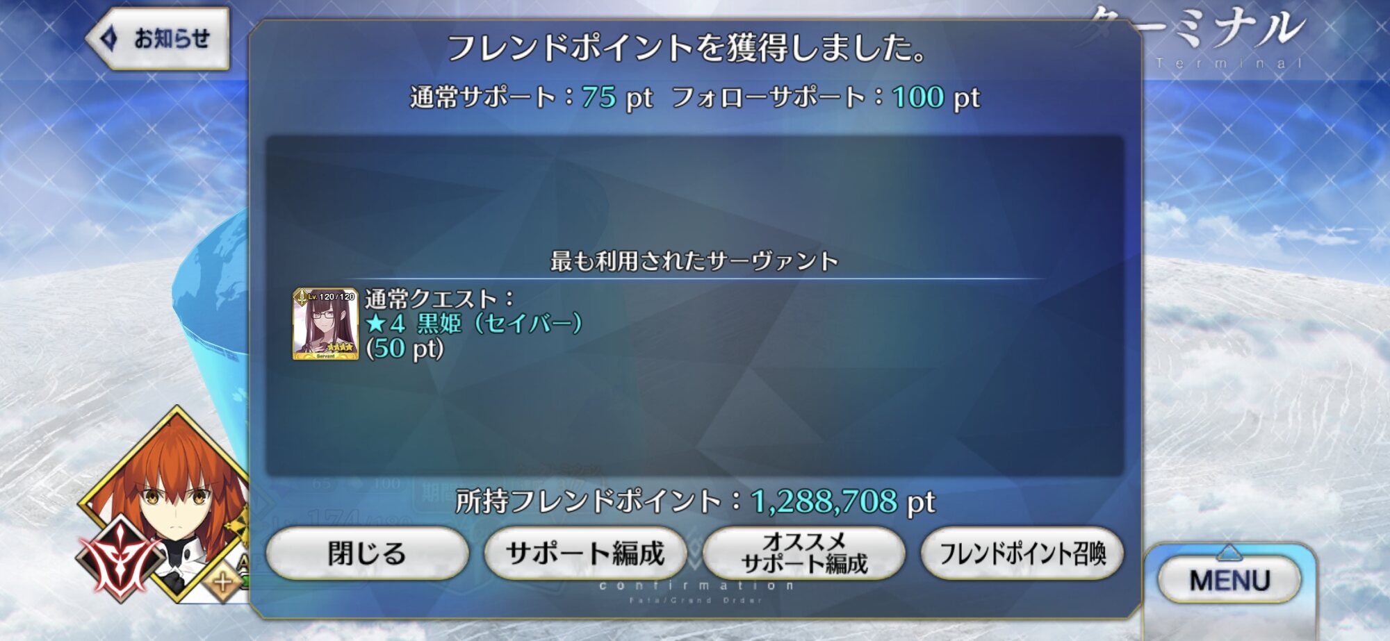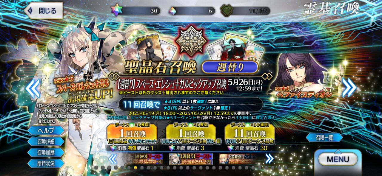 メガネ変えたほうが良いかも‥‥!ただ、ピックアップガチャが来ないわけはないので、その場合はアルトリア・キャスターがグランドセイバー続投かな