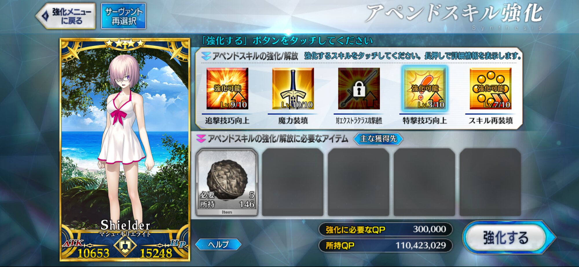 キャストリア、玉藻、マシュで最後まで突破したな。体力回復が玉藻で間に合うのとスキルチャージ減少がやっぱ強い。リリスとギャラハッドとシリアスが吹き飛んでしまったよ玉藻。>>90