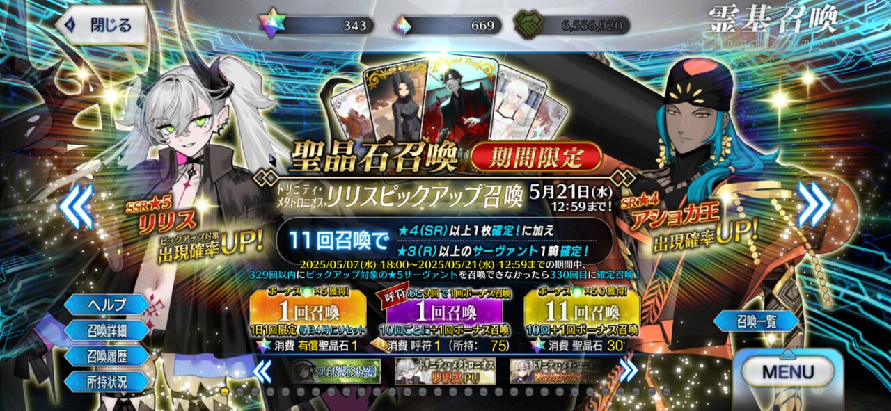 ニスターと銀髪の人大丈夫かな…アテシちゃんことリリスに最後の11連を回します。よくてよ10下さい