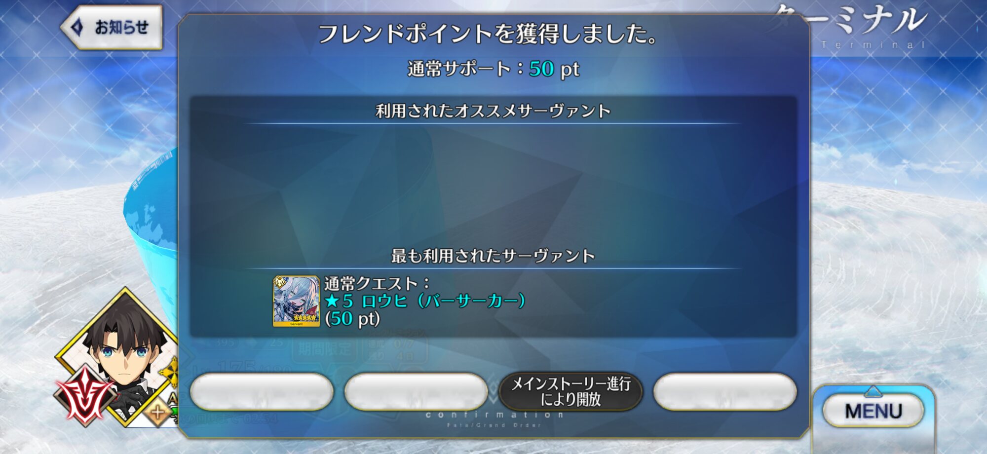 冠位認定戦…グランドサインを一定数解放が条件、撃破すると特別な礼装を入手、難易度は研鑽戦の★1程度>>886