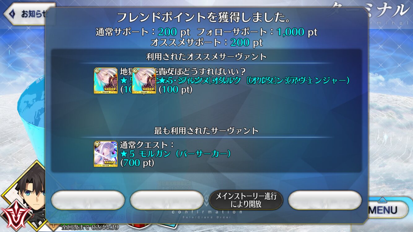 だから、(周回へ)行こう!!フレンド見渡したらもうグランド武蔵ちゃんばっかで人気だなあと思ったが